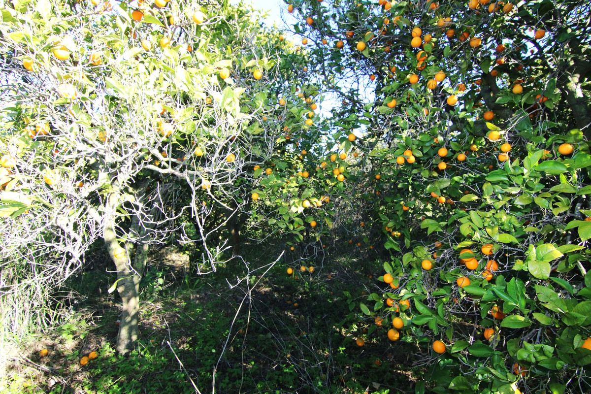 The property is flat. On it, you will find a variety of fruit trees, including orange, lemon, and grapevines, ideal for those who want to enjoy a natural environment.