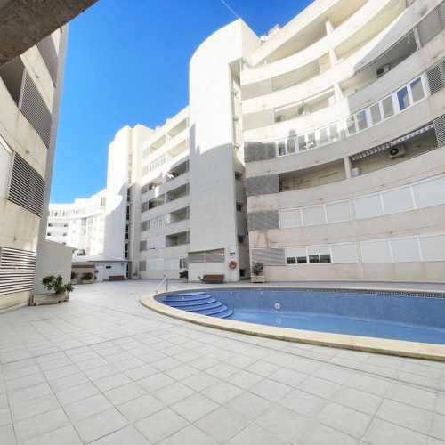 Built in 1980 and spanning 85 m², this bright first-floor property features three comfortable bedrooms with built-in wardrobes, one full bathroom, a welcoming living-dining area, and an independent kitchen. The standout feature is the generous terrace with stunning south-facing sea views, perfect for year-round enjoyment of the Mediterranean climate, al fresco dining, or relaxation. Additional comforts include air conditioning and a private garage space for added convenience and security.
