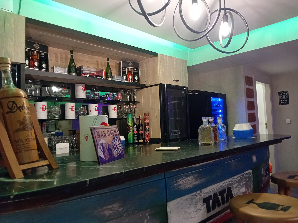 The basement offers flexible space, currently used a recreational room with a home cinema, a pool table, and a bar. This is the perfect entertaining zone. A door gives access to the double garage, and there is also a large utility room.