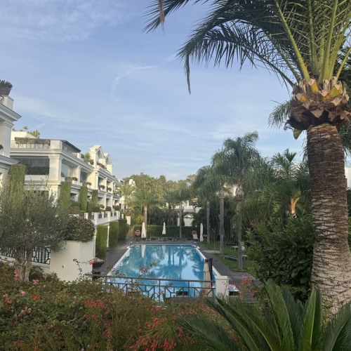 Well-maintained residential complex with gardens and communal pool
