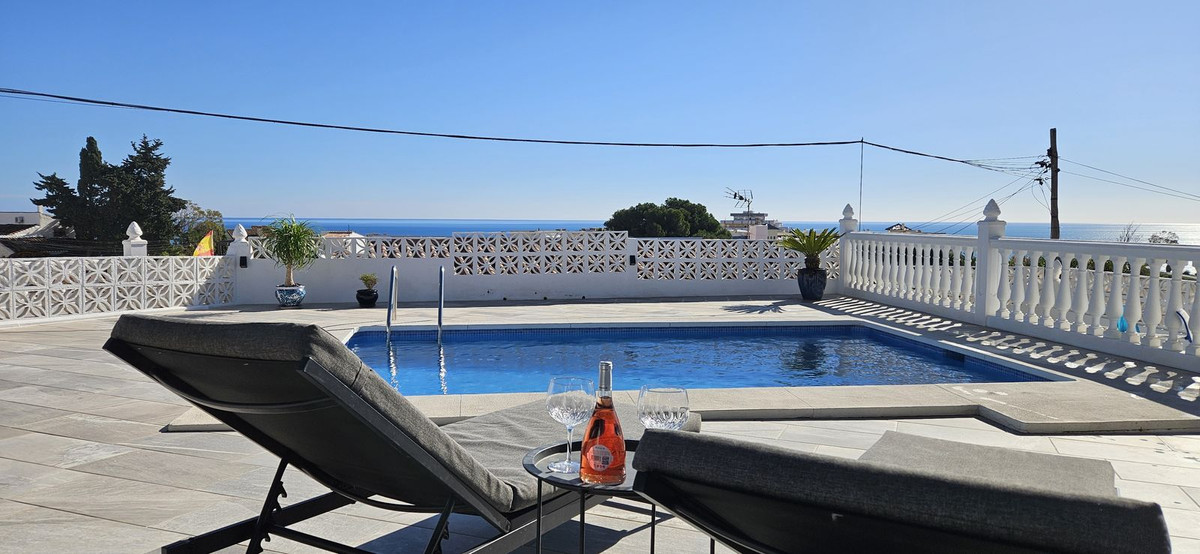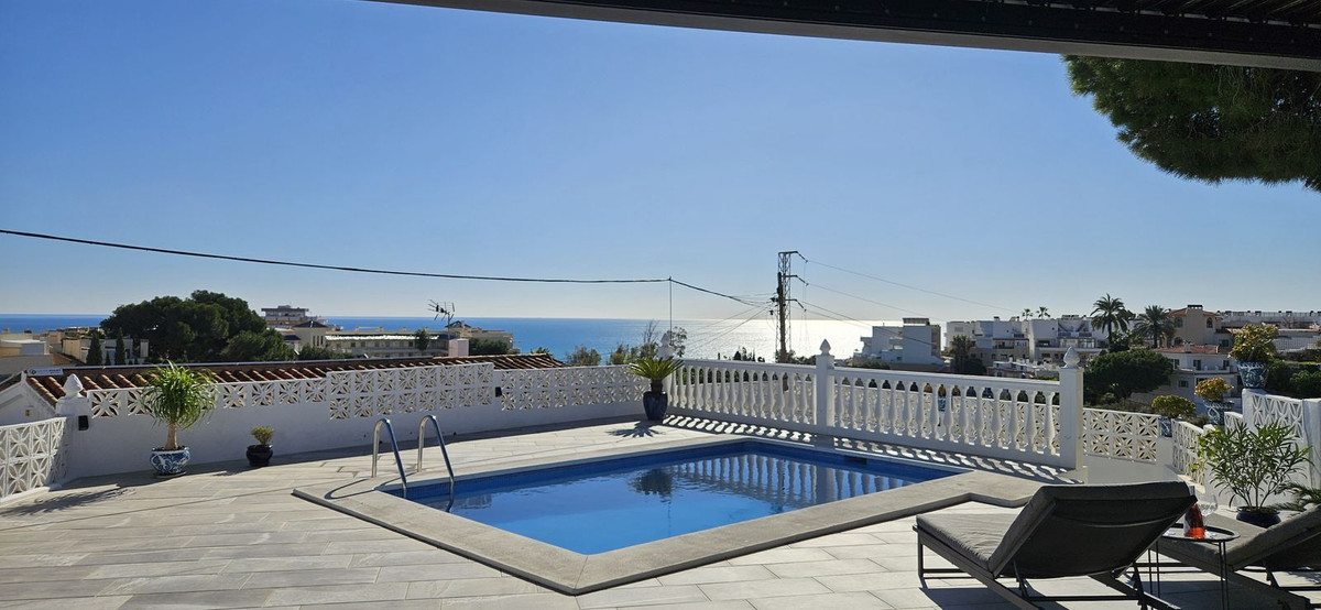 The property was renovated in 2022 and is presented in a well-kept and comfortable condition, with updates that respect the home's original character. The large terrace is a central feature of the villa, with the swimming pool positioned at its heart, and offers beautiful views over the Mediterranean Sea as well as the surrounding area of Torreblanca.
