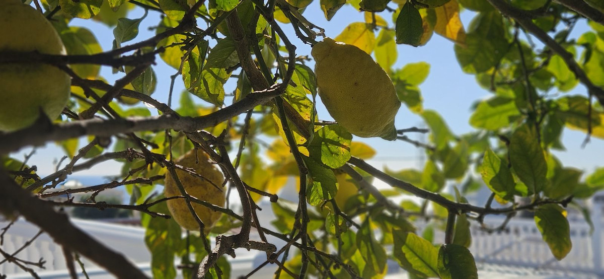 Next to the villa, a small private garden with a lemon tree and an orange tree adds a pleasant Mediterranean touch.