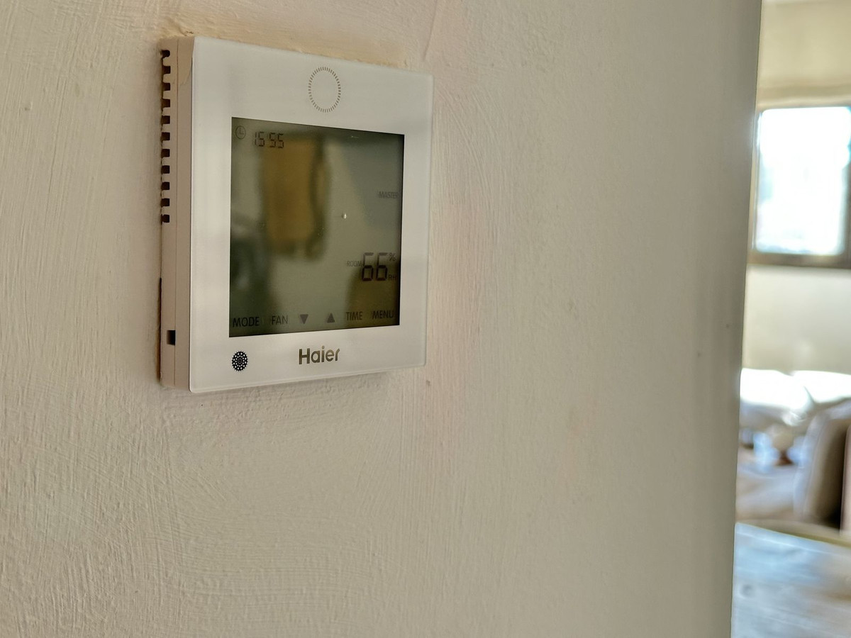 Vandkedelsystemet er blevet udskiftet med en ny energieffektiv luftvarmepumpe og et helt nyt energieffektivt klimaanlæg.