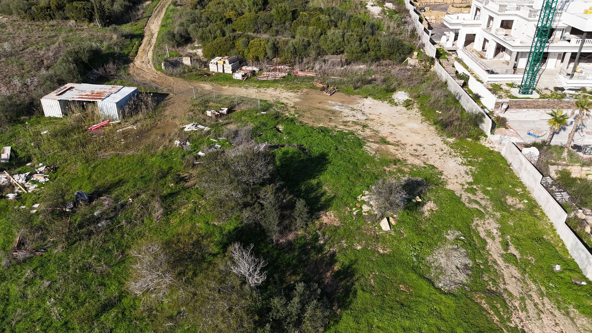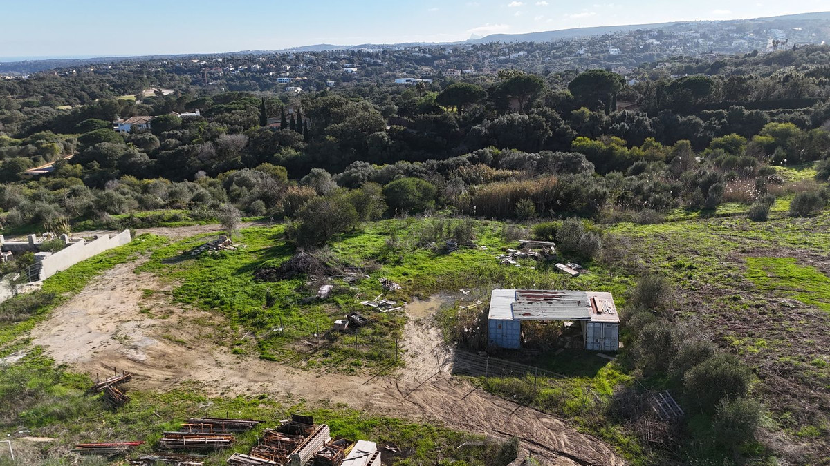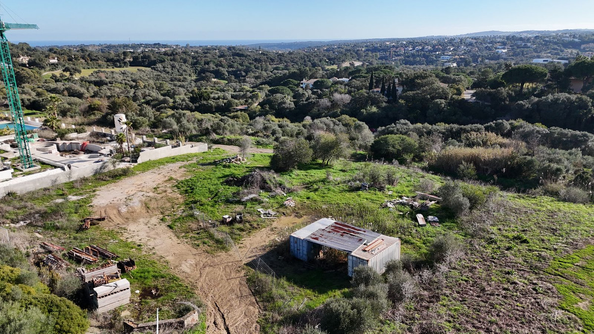 At the lower level lies the main buildable area, forming an almost perfect square of 2,804 m² (approximately 53.3 x 52.3 metres). This area is very flat and offers exceptional privacy. The south-facing orientation across the entire plot is ideal, ensuring excellent natural light throughout the day. From ground level, the plot enjoys sea views on clear days, as well as open views towards the Guadalquitón Natural Park and the Real Club Valderrama golf course.