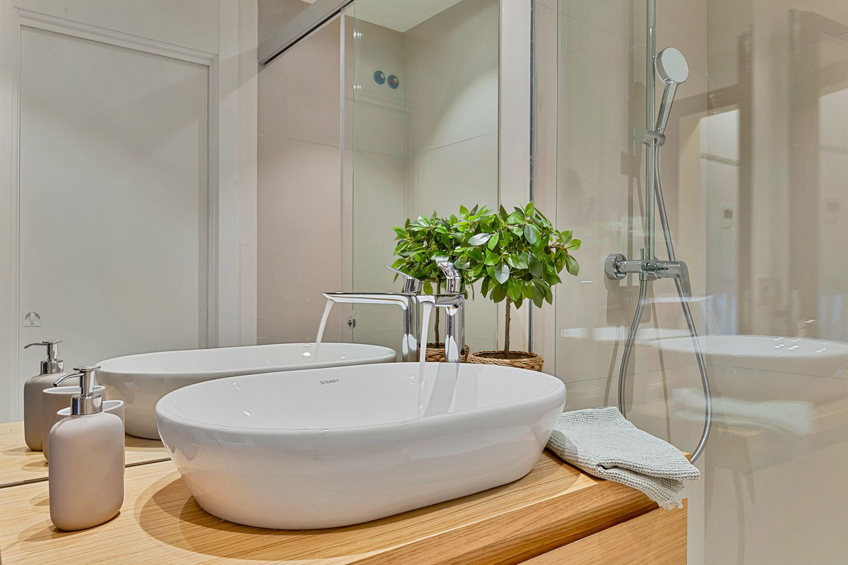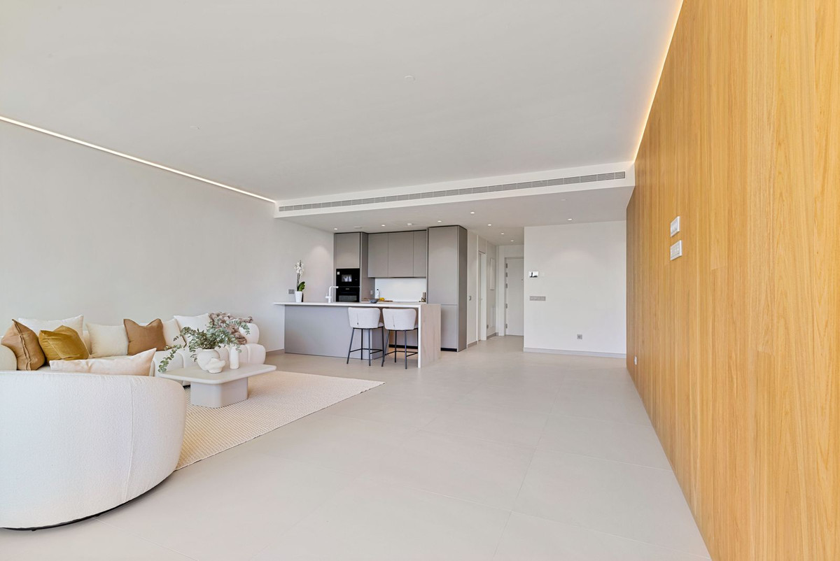 This contemporary apartment offers three well-proportioned bedrooms and an open-plan kitchen seamlessly connected to the living area, creating a natural flow between everyday life and social moments. Large windows invite in natural light and enhance the sense of space, making the home feel both welcoming and refined.