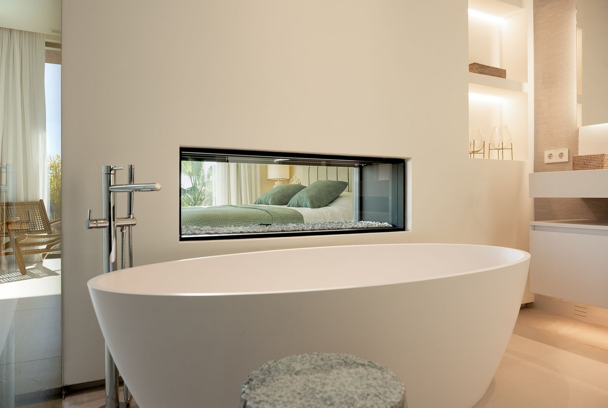 At walking distance, we find the sandy beaches of Marbella East, the Dunes of Artola, shops and restaurants and the port of Cabopino. Renowned golf courses, outstanding international schools, and the charming old town of Marbella are all within a 10 minutes' drive. Surrounded with similar high-end properties and the tranquillity of Marbella East, this contemporary villa is definitely worth to visit.