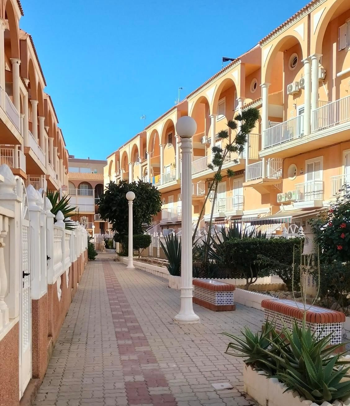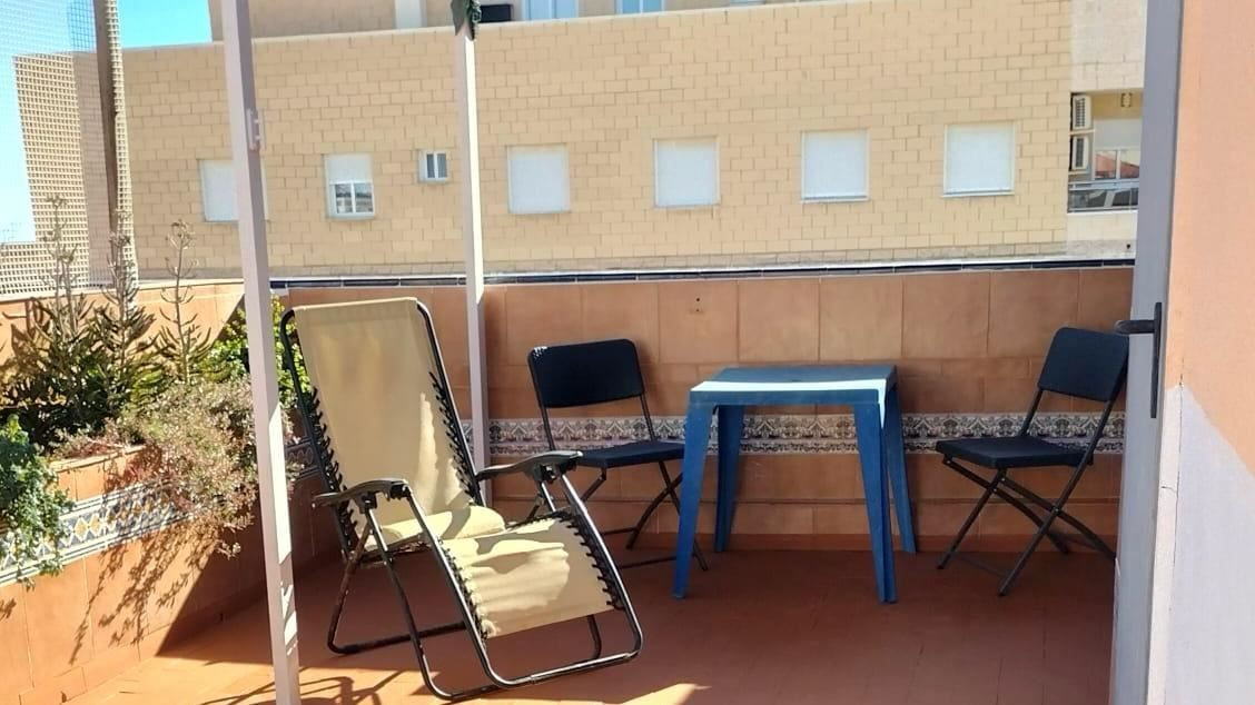 Charming apartment with private solarium and sandy beach as a neighbor Just a few steps from the gentle breeze of the sea awaits this charming apartment, a home where the sun streams through the windows and where every day begins with the feeling of living on the coast for real. Here you live on the third floor in a cozy and well-kept residential area with lush gardens and an inviting communal pool that becomes a natural meeting place during the warm months of the year.