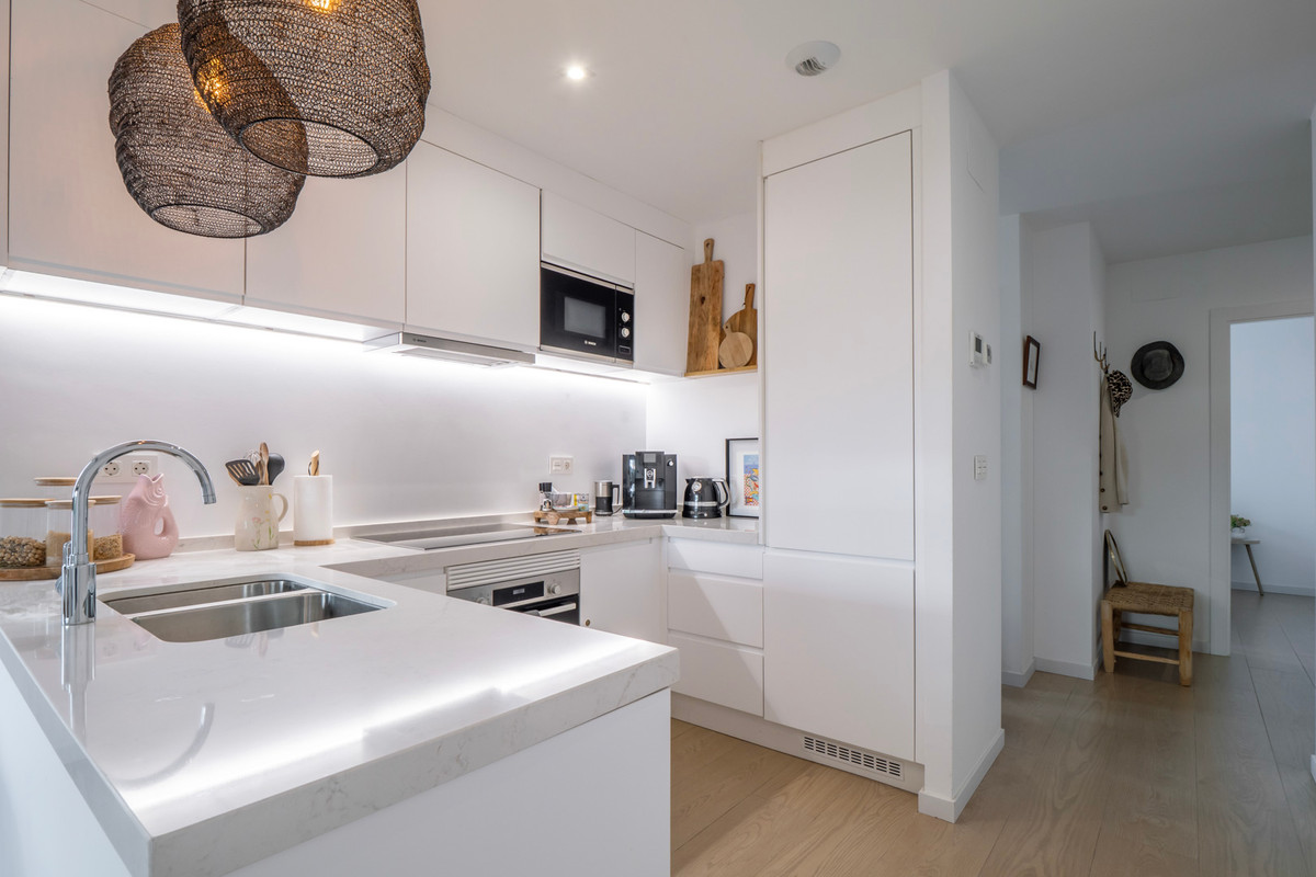 This beautiful penthouse is located on the second floor of a small apartment building, just 600 meters from Arenal beach. Thanks to its location next to a green area, the apartment enjoys unobstructed and pristine views of the valley, Montgó, and the mountainous landscape that stretches behind it.