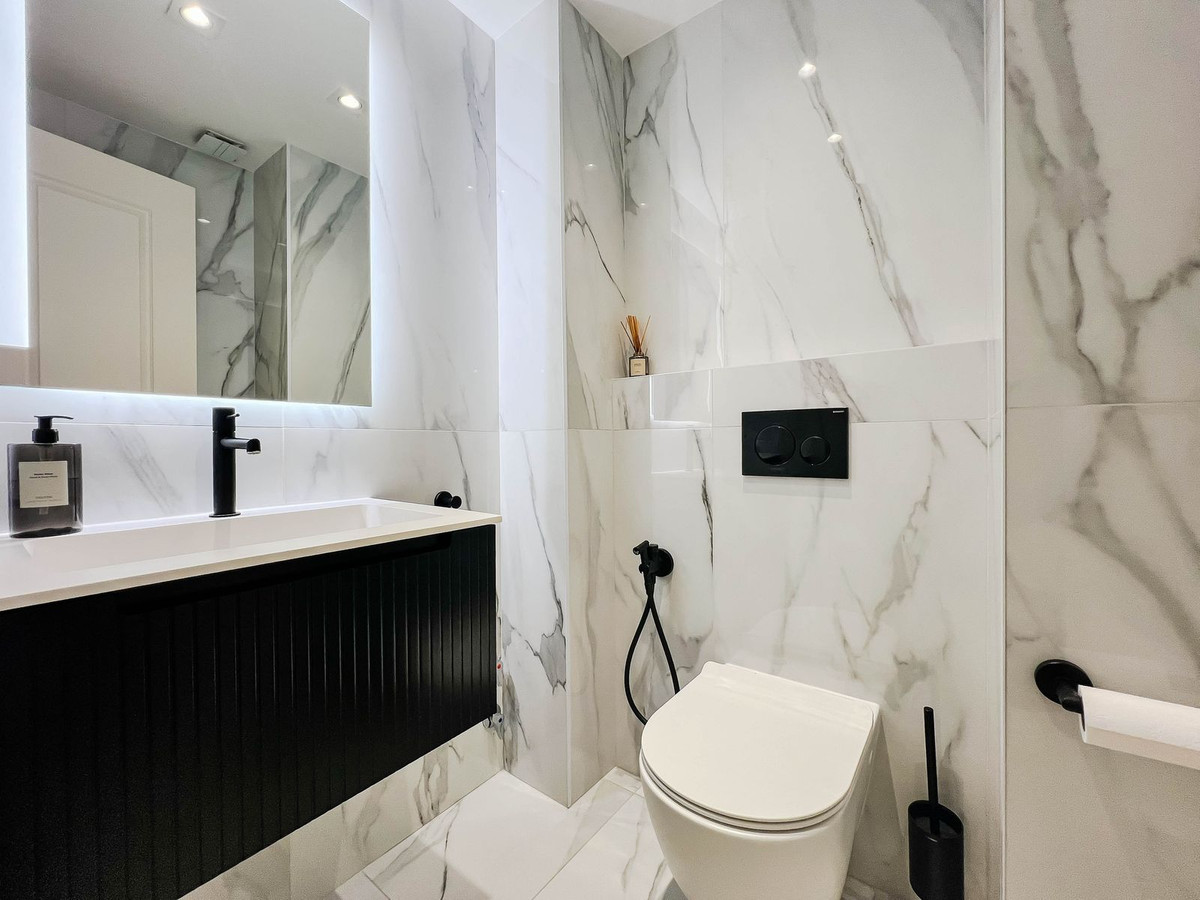 All three bathrooms have been completely refurbished with contemporary porcelain finishes, glass shower screens and designer fixtures. The master bedroom includes an en-suite bathroom and a generous walk-in wardrobe. The second en-suite bedroom also offers great space and natural light. The home is completed with marble floors, hot/cold air conditioning, high-quality interior carpentry and partially included furniture.