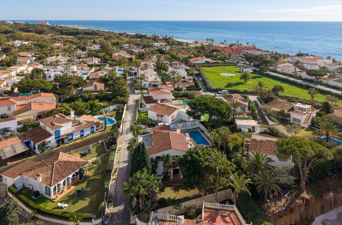 Stunning Andalusian-style villa located in the highly sought-after residential area of Marbesa, East Marbella. Just a 3-minute stroll to beautiful beaches and popular restaurants like Simbad, Moosa Bay, Triana and walking distance to the famous Cabopino harbour.