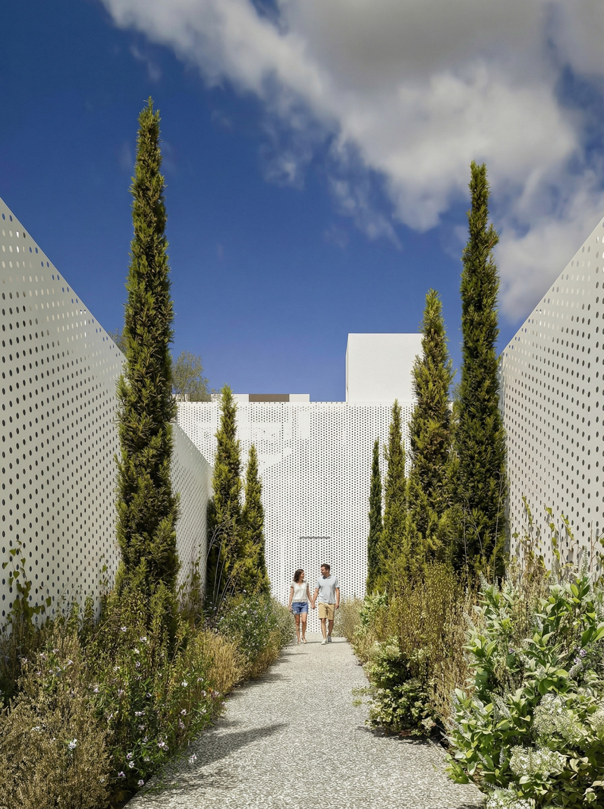 Boligerne tilbydes med et eller to soveværelser og kendetegnes ved rene arkitektoniske linjer, store glaspartier, selvstændig adgang og private haver, der fungerer som en naturlig forlængelse af boligens indre rum. Fællesområderne er designet til daglig komfort og udeliv og inkluderer fælles swimmingpool med solarium, anlagte haver og grønne områder samt stemningsbelyste gangstier. Projektet inkluderer også private parkeringspladser, opbevaringsrum og ladestandere til elbiler.