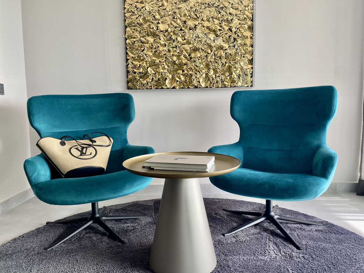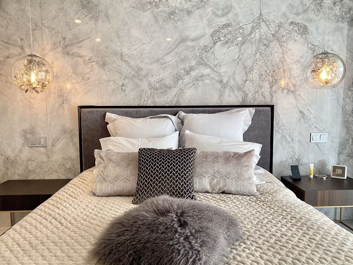Probably the most unique and spacious apartment in the whole Los Flamingos! Stunning 4-bedroom apartment nestled in Tee 6, offering breathtaking views of the serene golf course and the sea near Villa Padierna 5-star Hotel. Originally two separate 2-bedroom units were joined together and have undergone a luxurious renovation, elevating tyhe residence to an exceptional standard of living.