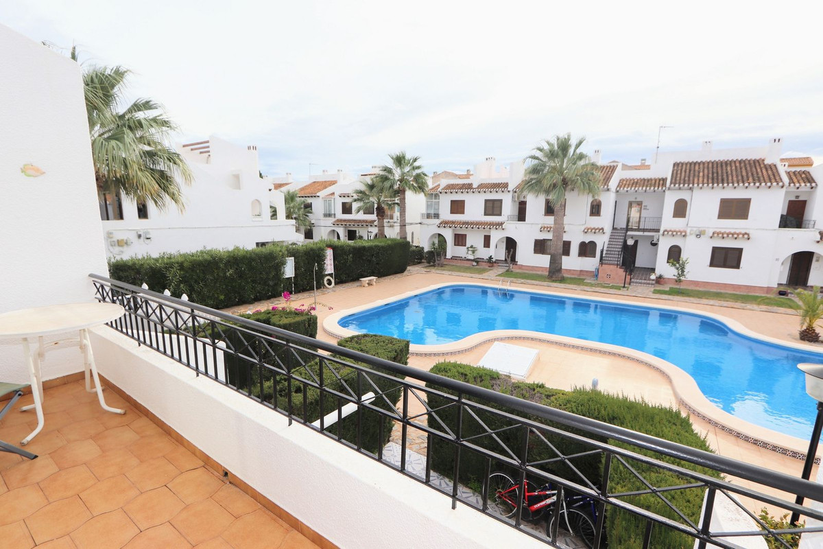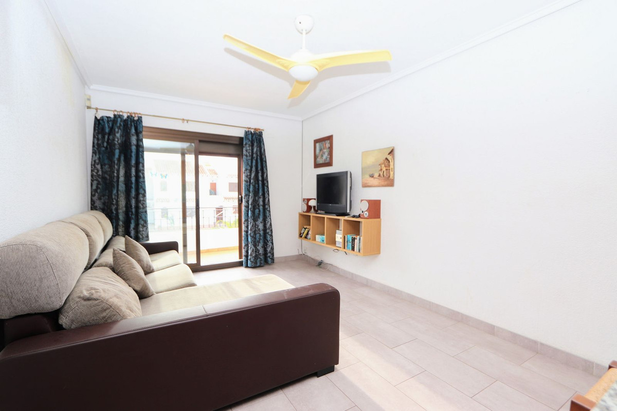 We offer you this Fabulous Top Floor Apartment located only 180m to the beaches of Cabo Roig and walking distance to all amenities, such as supermarkets, post office and a host of restaurants and bars. The property is located in El Cid 1 and consists of 1 bedroom with wardrobes, 1 bathroom, living area and a fully fitted kitchen. The property benefits from a private sunny terrace over looking the communal swimming pool, communal parking and is sold furnished.