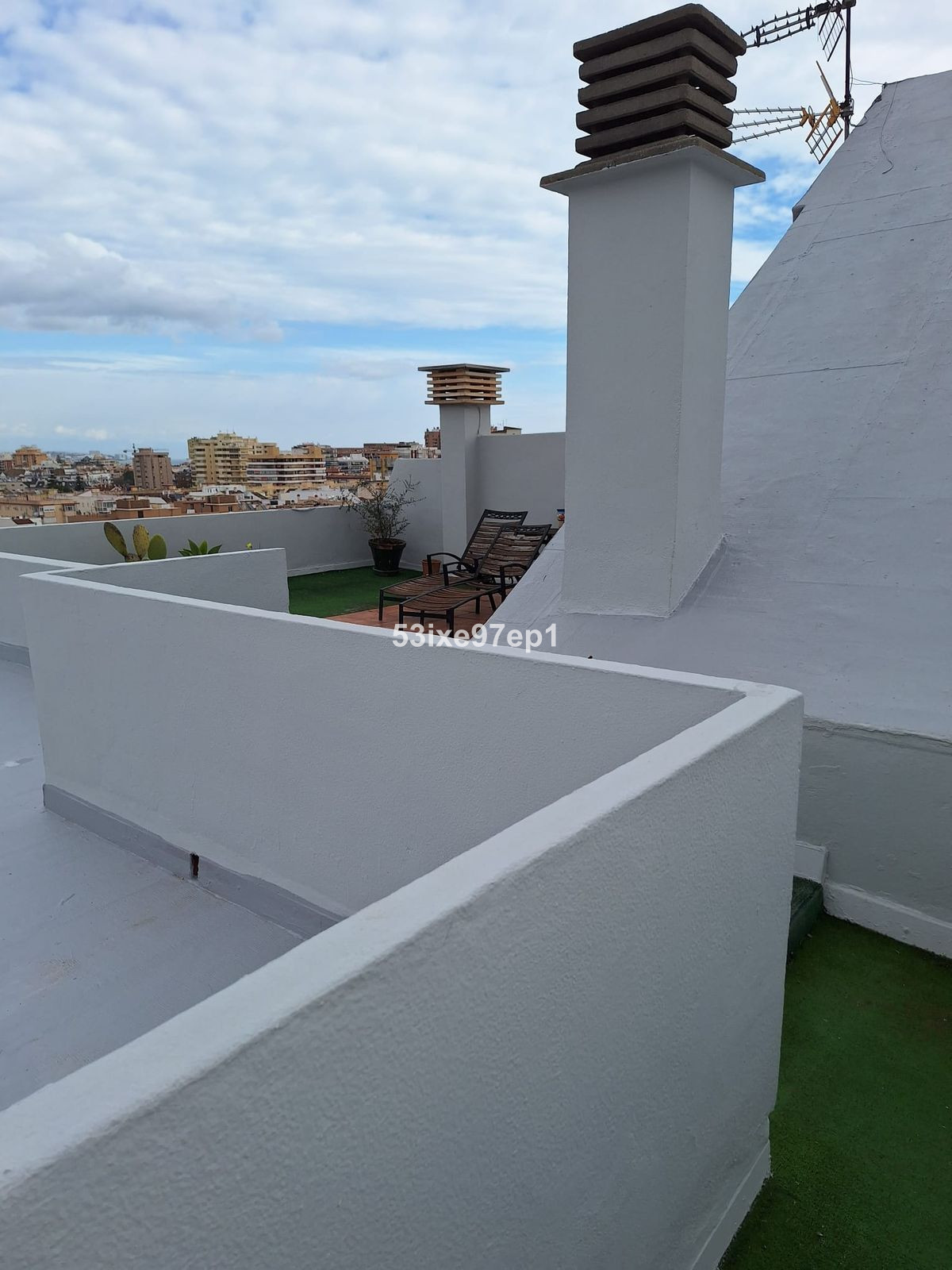 From the hall we then enter the living room with access to a terrace where you can look out over the roof ridges of Fuengirola down to the sea.