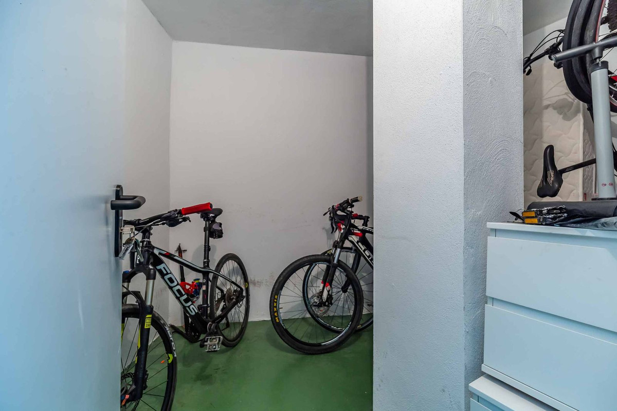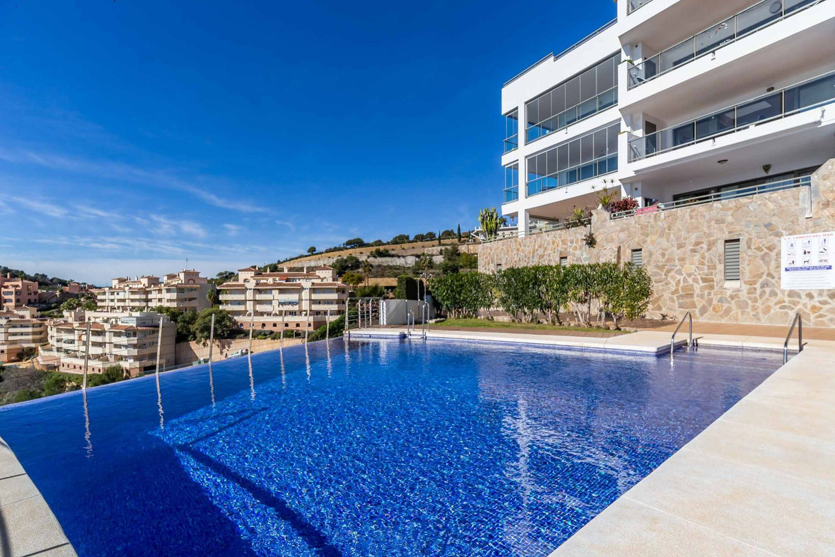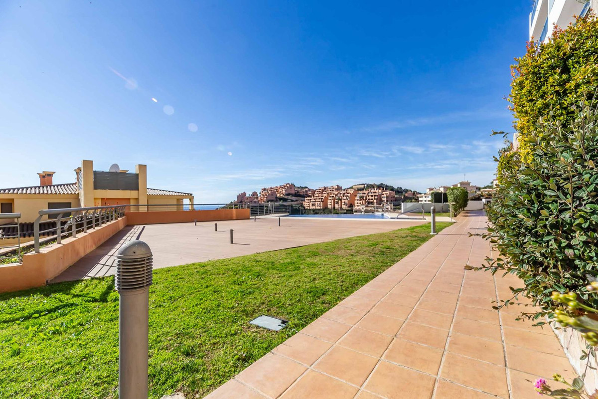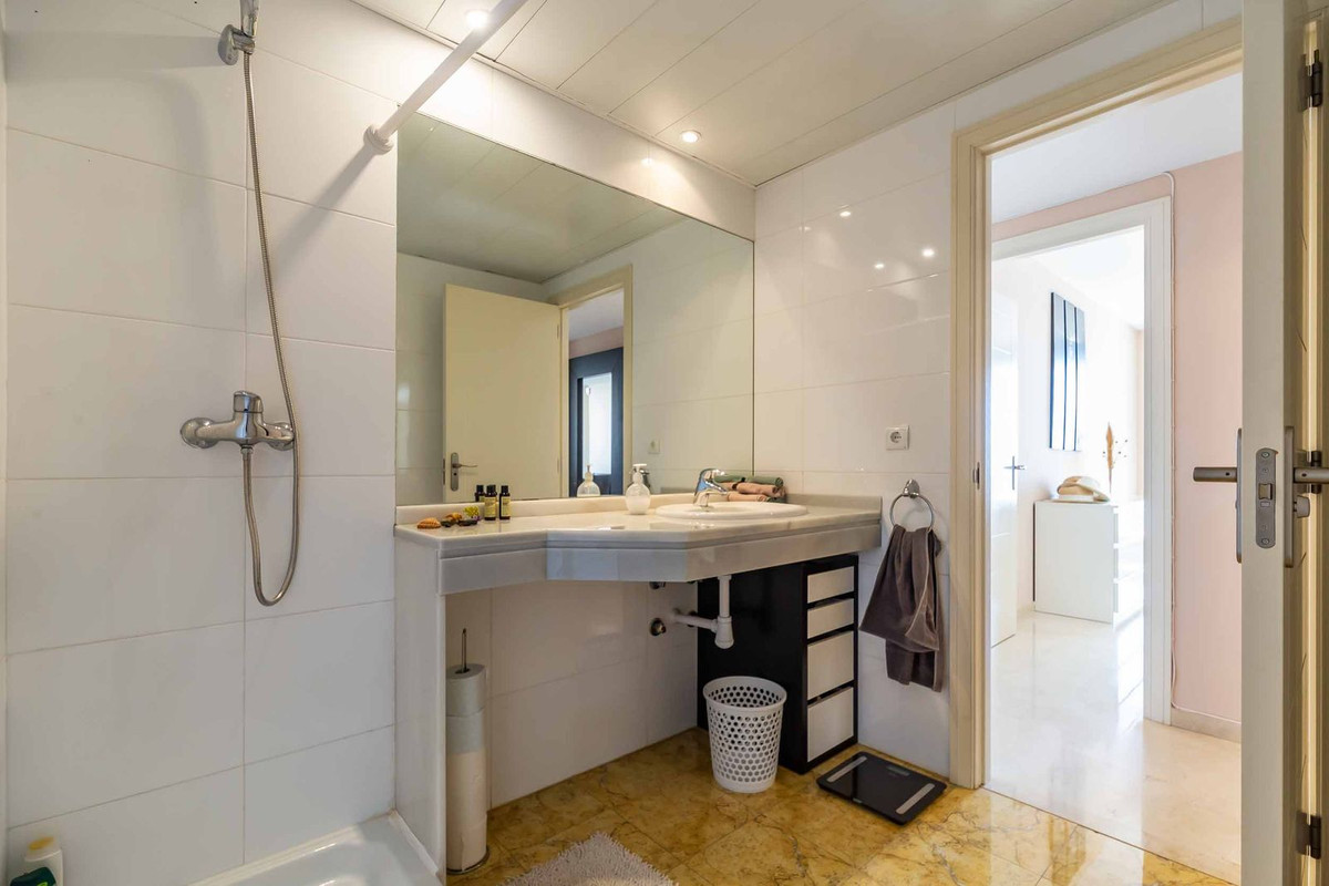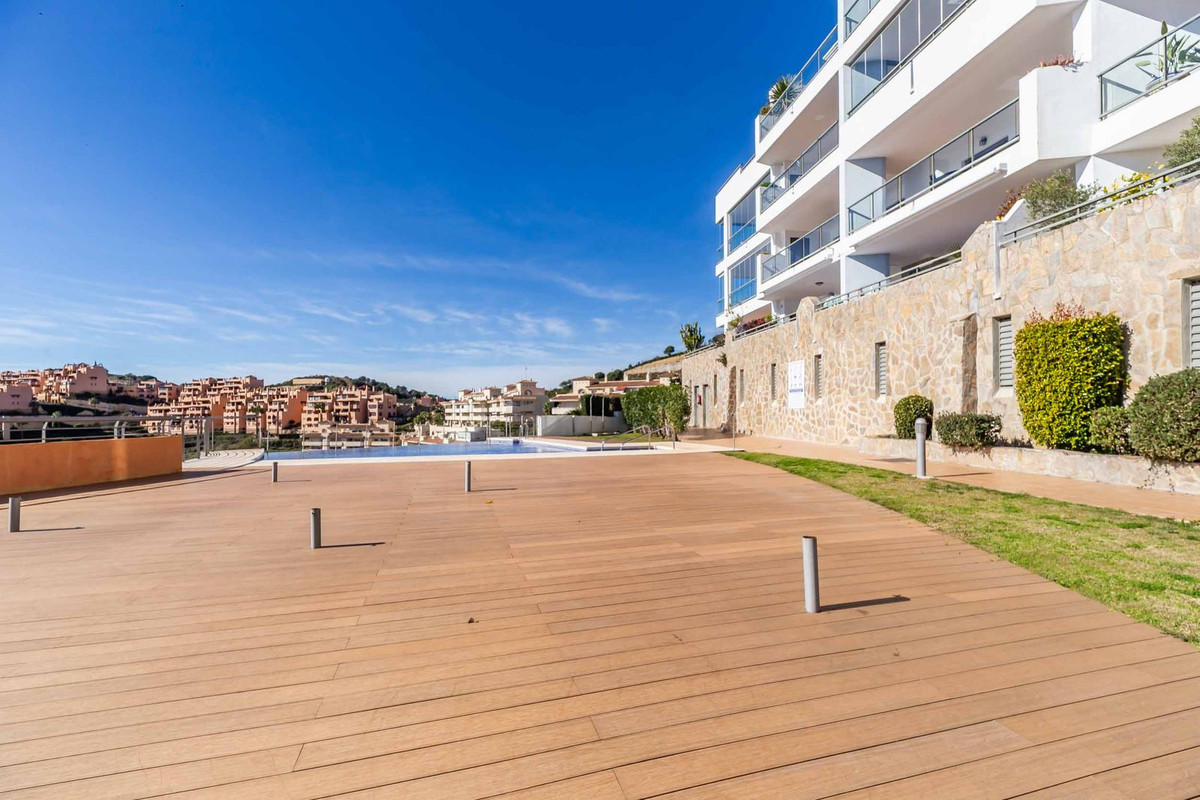 Boligen er på ca. 97 m² og byder på 2 soveværelser med indbyggede skabe samt 2 badeværelser, heraf ét en-suite. Den rummelige opholds- og spisestue har store gulv-til-loft vinduespartier, som giver et fantastisk lysindfald og direkte adgang til en meget stor sydvestvendt terrasse på ca. 40 m² – perfekt til udeliv, afslapning og middage med udsigt til Middelhavet og bjergene.