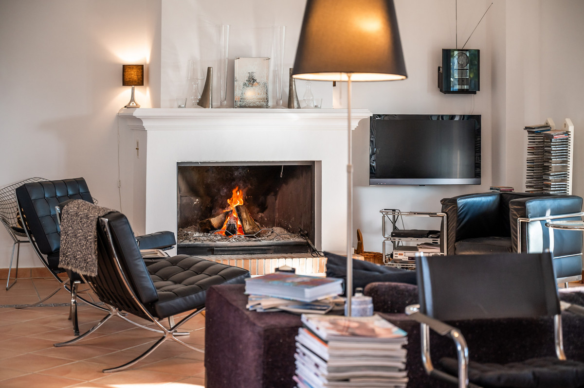 Full of charm and character, the villa immediately sets the tone as you approach through well-trimmed hedges leading to a beautiful antique wooden entrance door. Upon entering, you are welcomed into a stunning central courtyard that the entire house wraps around, flooding the ground floor with natural light and seamlessly connecting the living spaces. From here, you can see straight through the home and out towards the lush green surroundings beyond.