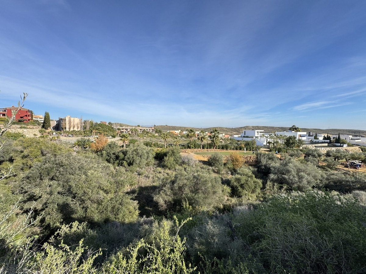 From the lounge, there is direct access to the main outdoor entertaining space, either through the living area or via the central courtyard. This impressive terrace offers a private garden, a sun awning, and wonderful open views across the golf course and surrounding countryside, making it an ideal space for outdoor living.