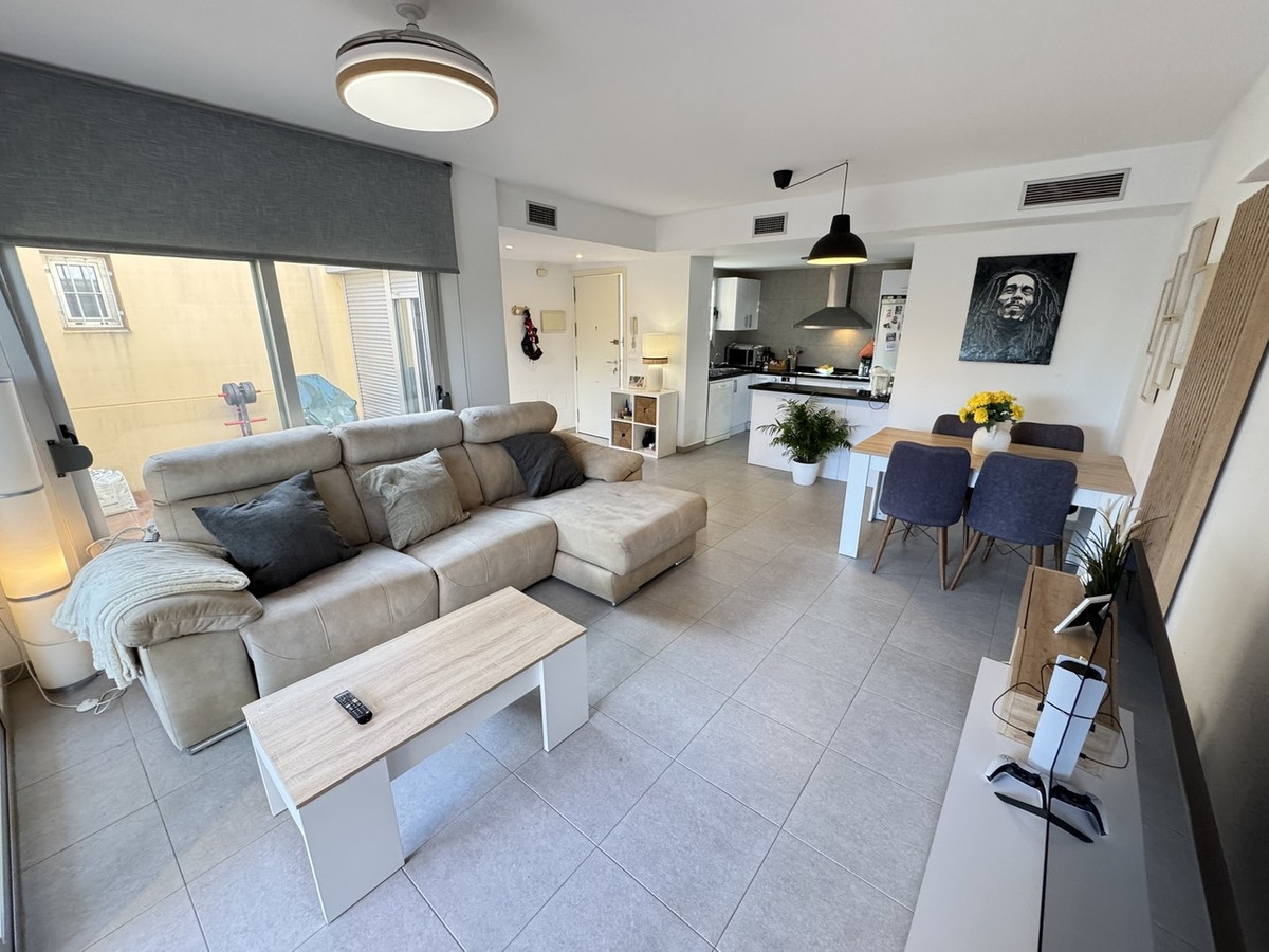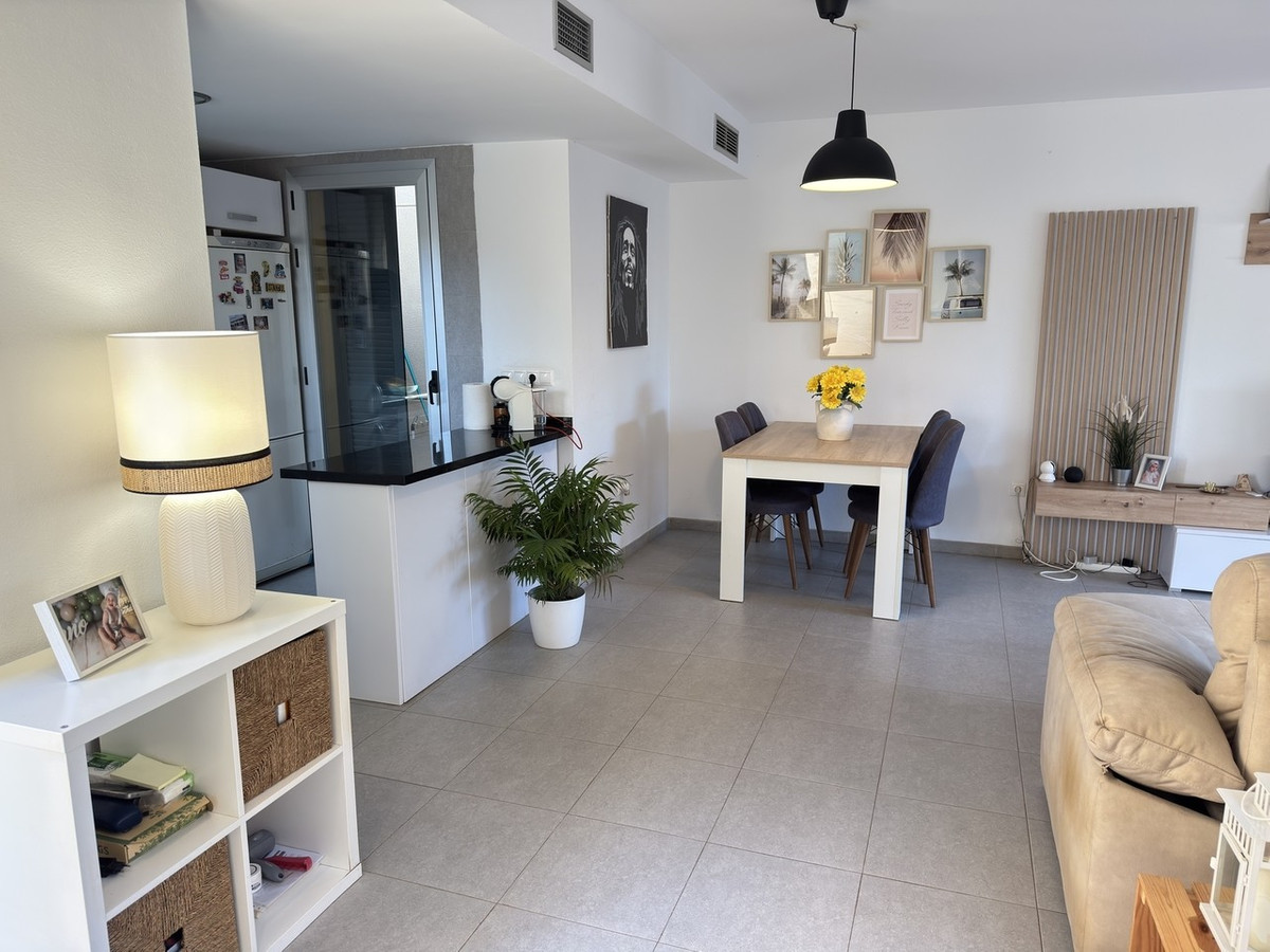 Inside, the home features a bright and spacious open plan layout, enhanced by three large floor to ceiling sliding doors that flood the living area with natural light. The lounge is generously sized, with ample space for both relaxation and dining. The open plan kitchen is fully fitted with electrical appliances, generous storage units, and benefits from an internal courtyard and utility terrace.