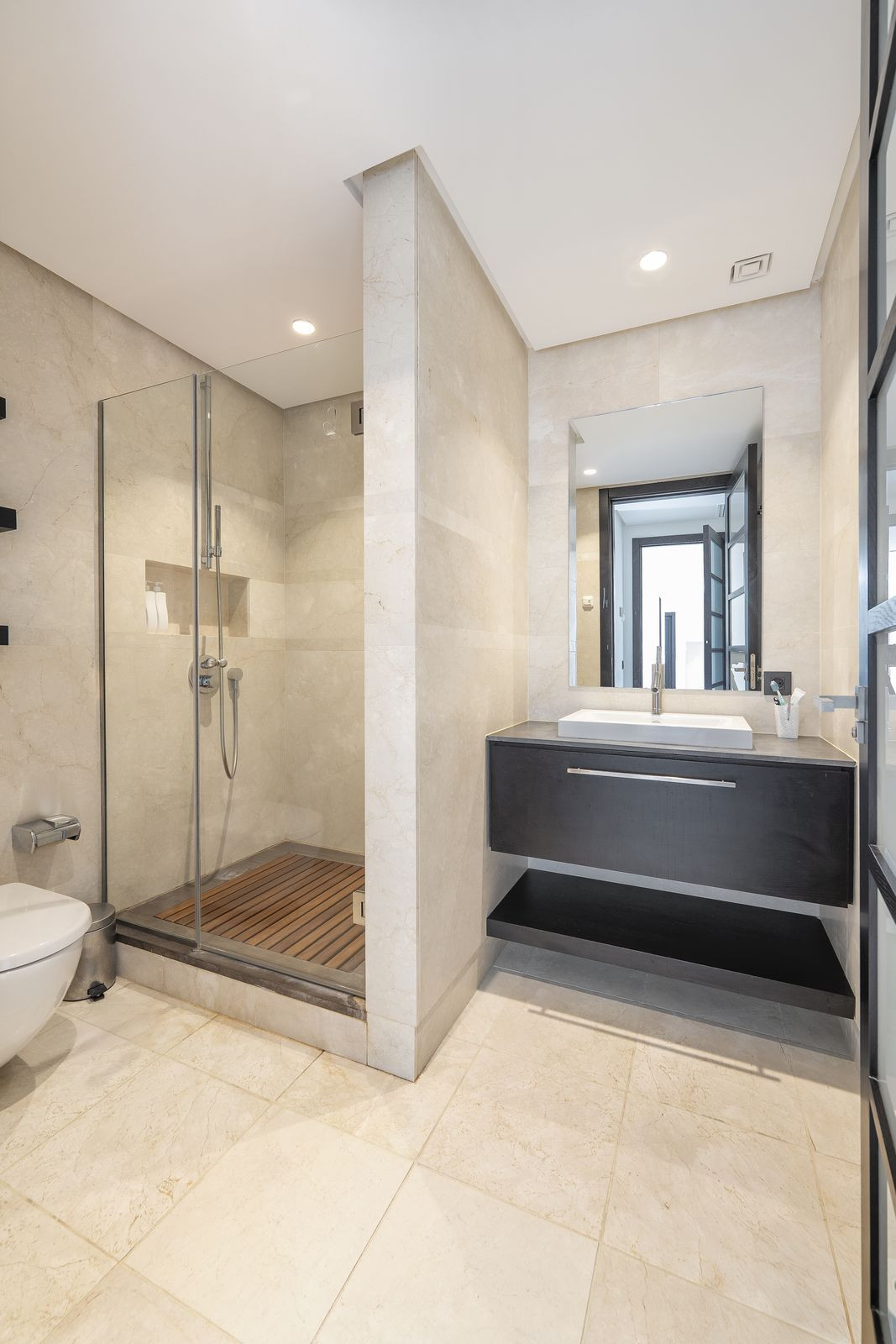 The townhouse features multiple spacious bedroom suites, each offering comfort, privacy, and beautifully appointed bathrooms. The master suite stands out with its impressive dimensions, bespoke storage, and serene views over the surrounding natural landscape.