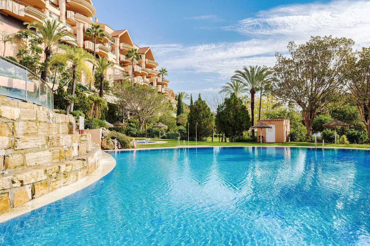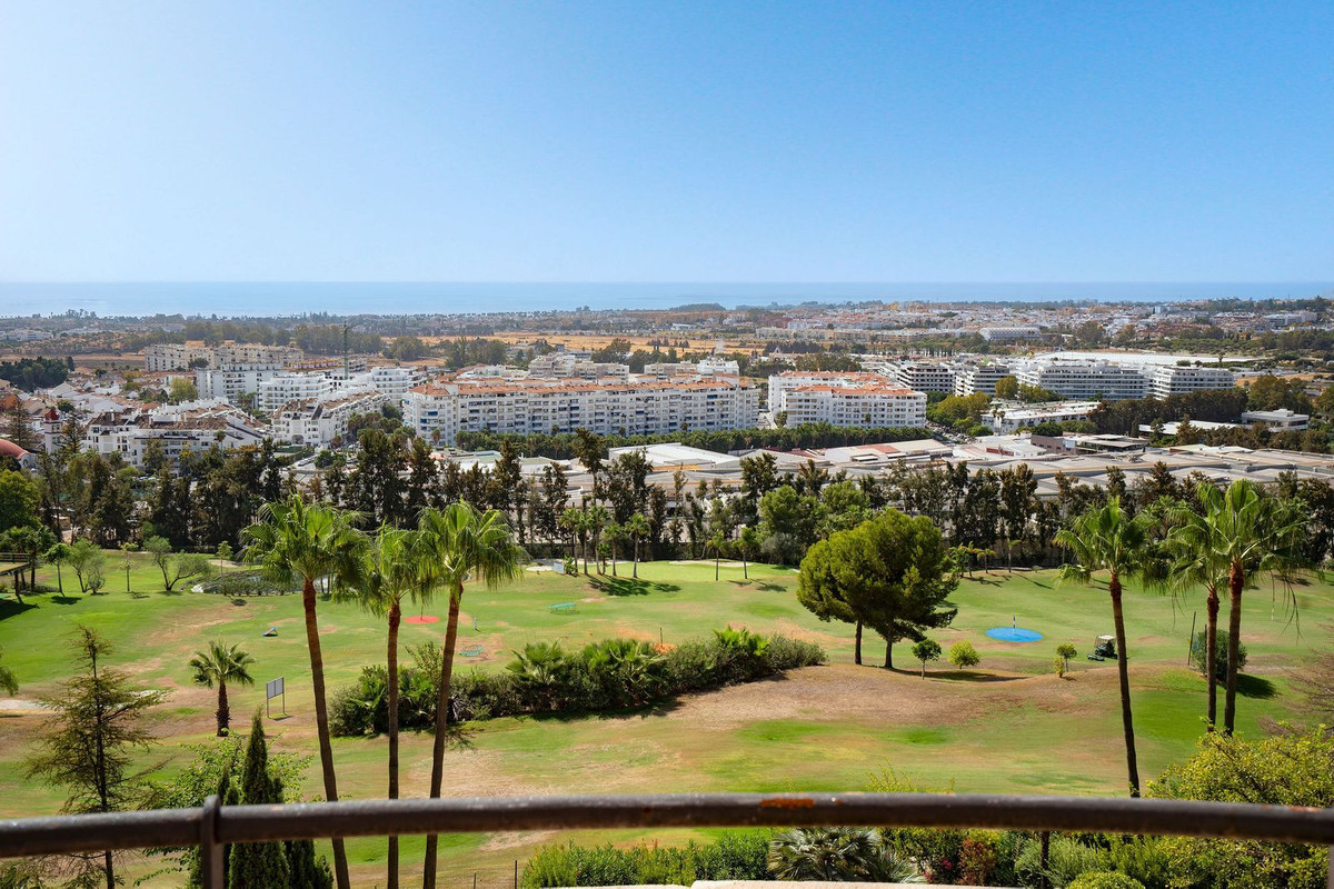 Introducing this spacious two-bedroom corner apartment located in the sought-after development of Magna Marbella in Nueva Andalucia offering stunning panoramic sea, mountain & golf views from it´s west facing terrace. The accomodation comprises an entrance hall, fully equipped kitchen, spacious lounge & dining area leading directly out onto the covered/uncovered terrace, master bedroom suite with direct access to the terrace and a good-sized guest bedroom & family bathroom. This unit has the possibilty to be converted into a three-bedroom and an extra special feature is the large double terrace. The development itself is gated with 24-hour security, two communal pools and 1 underground parking space and storage room included in the price.