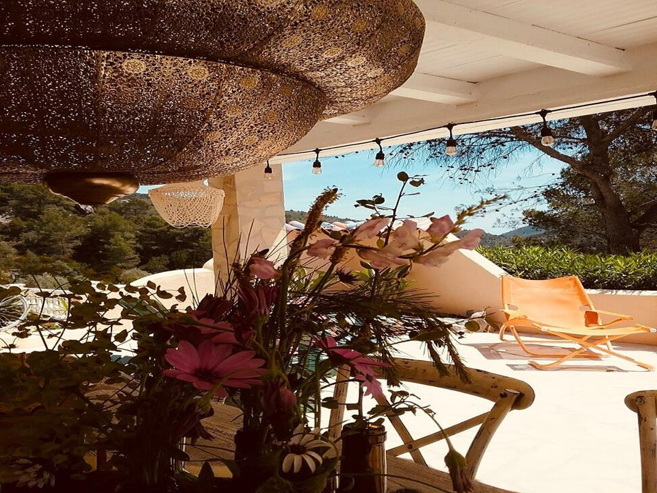 Covered terrace overlooking the pool