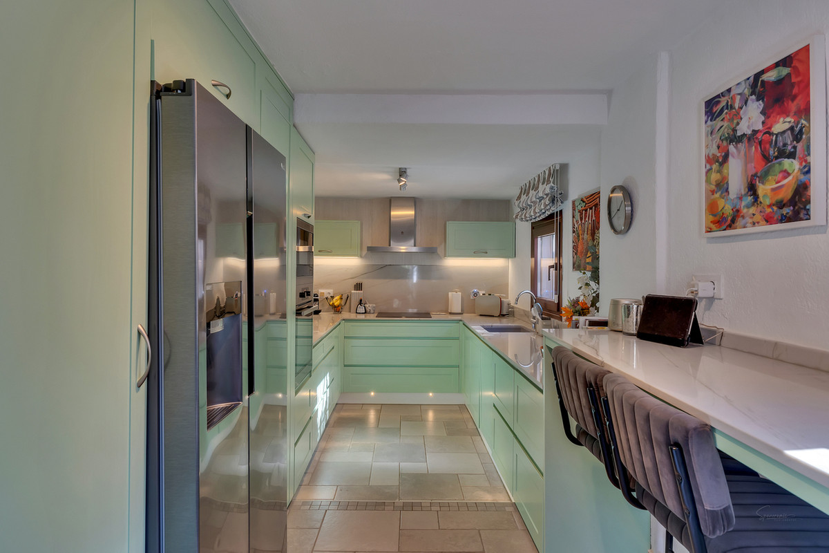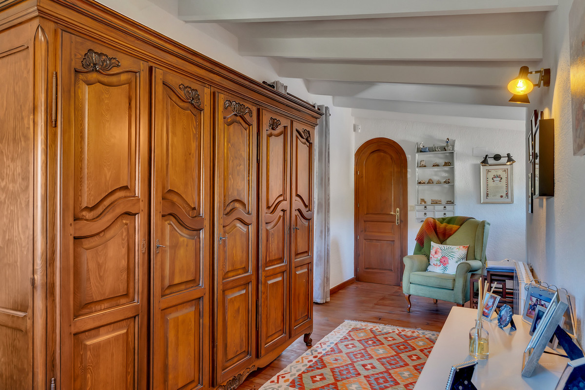 Downstairs, the kitchen opens onto a beautiful, private, walled garden terrace. It is richly planted with a variety of Mediterranean flora, and features several distinct seating areas. The recently refurbished 10 x 5 m swimming pool is surrounded by open terrace. In addition, there is a summer kitchen and dining area, an outdoor utility room with a bathroom and a specially designed kennel for furry friends. The outdoor living spaces offer complete peace and tranquillity. With everything you need for outdoor, living and entertaining, this is your own private paradise.