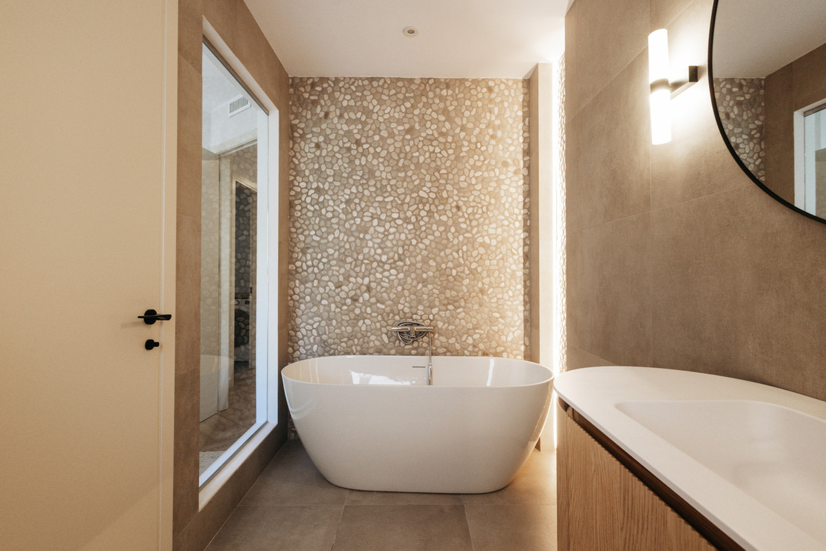 The upper level is crowned by an exclusive living room with direct access to the expansive rooftop terrace, where a solarium, generous lounge areas, and an elegant outdoor bar create the perfect setting for relaxation. Large floor-to-ceiling windows provide abundant natural light, and the space is equipped with two wine coolers as well as an electric fireplace with integrated heating. With 360-degree panoramic views over the Mediterranean Sea and Marbella's stunning landscape, this is truly the ultimate place to unwind.