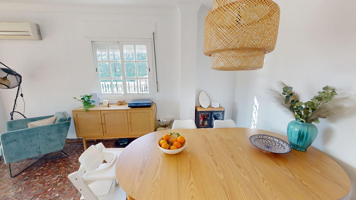 Træd ind i en verden, hvor middelhavselegance møder moderne komfort i denne charmerende ejendom på 76,2 m2, beliggende i hjertet af Moclinejo, Malaga. Dette solbeskinnede hjem er din port til den eftertragtede spanske livsstil med to soveværelser og et gennemarbejdet opholdsrum, der maksimerer både form og funktion. Hjertet i dette hjem er uden tvivl det fantastiske køkken, hvor kulinariske drømme går i opfyldelse. Lyse træmøbler giver varme, mens topmoderne apparater, herunder en elegant gaskomfur og indbygget ovn, tilfredsstiller din indre kok. Det ternede gulv tilføjer et strejf af klassisk charme og kombinerer tradition med moderne stil. Stue-spisestuen er et eksempel på den moderne spanske livsstil, hvor naturligt lys strømmer ind gennem store vinduer, oplyser rummet og byder på en fantastisk udsigt over det omkringliggende landskab. En elegant rattan-pendellampe skaber en hyggelig atmosfære til afslapning eller underholdning. Rummet åbner ud til en dejlig terrasse, ideel til udendørs spisning eller blot til at nyde det middelhavslige solskin. Soveværelset er et fredfyldt tilflugtssted med 17,7 m2 absolut komfort. Spejlede skabe maksimerer pladsen og reflekterer lyset, hvilket får rummet til at føles endnu mere rummeligt. En anden rattanlampe tilføjer et bohemepræg og komplementerer rummets luftige atmosfære. Det andet soveværelse, som i øjeblikket bruges som børneværelse, demonstrerer ejendommens alsidighed. Med sin neutrale farvepalet og charmerende detaljer er den klar til at tilpasse sig dine behov, hvad enten det er som børneværelse, hjemmekontor eller gæstesuite. Badeværelset er en spa-lignende oase med stilfulde fliser og moderne armaturer. Et stort vindue lader naturligt lys strømme ind i rummet og skaber en lys og forfriskende atmosfære. Gennem hele ejendommen giver terrakottagulve en autentisk spansk karakter, mens moderne faciliteter som aircondition sikrer komfort året rundt. Den gennemtænkte indretning og elegante design skaber en harmonisk sammenhæng, der får hver dag til at føles som en middelhavsferie. Beliggende i den maleriske landsby Moclinejo tilbyder denne ejendom den perfekte balance mellem ro og adgang til Malagas livlige kultur. Her køber man ikke bare et hus; Invester i en livsstil, der indkapsler essensen af spansk charme og moderne bekvemmelighed. Gør dette sted til dit eget middelhavsparadis og begynd at leve det liv, du altid har drømt om. Vi er glade for snart at kunne præsentere denne drømmeejendom for dig, enten personligt eller via en virtuel fremvisning. For denne verden er unik, ligesom vores Axarquía. I Andalusien. På Costa del Sol. Her, på livets solrige side... Vi er glade for snart at kunne præsentere denne ejendom for dig, enten personligt eller via virtuel fremvisning. Fordi denne verden er unik - ligesom vores Axarquía. I Andalusien. På Costa del Sol. Her, på livets solrige side...
