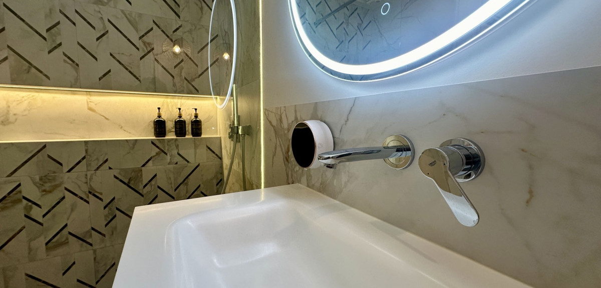 Spread over two levels, the house features three bedrooms plus a dedicated office/study, a large luminous living roomand a fully renovated kitchen with ample space for dining. On the ground floor, you'll find one bedroom, a guest toilet, and the expansive kitchen and living area. Upstairs there are two further bedrooms, a family bathroom with stylish shower, and the office space that opens onto a private terrace — perfect for morning coffee or evening relaxation.