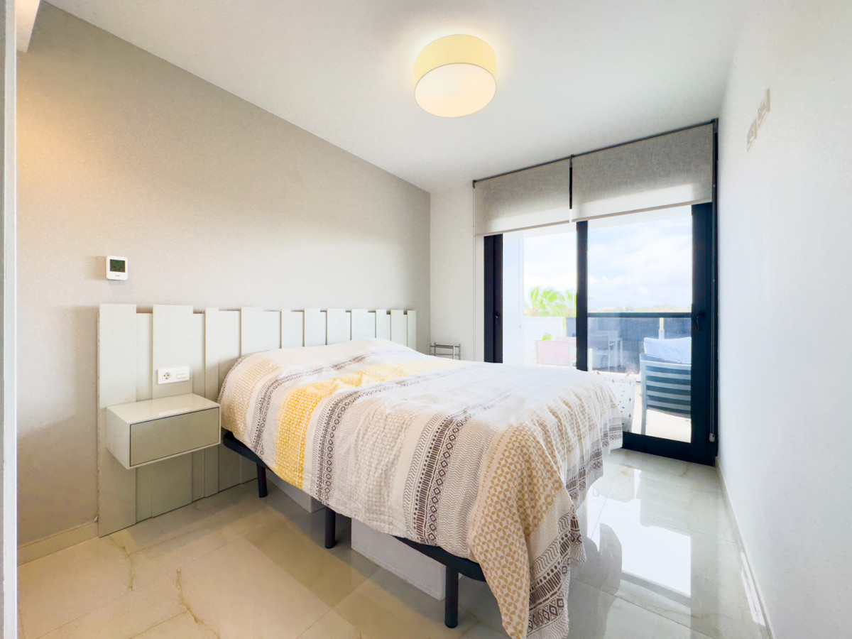 This modern apartment in Orihuela Costa is located on the second floor of the exclusive Amanecer 3 residential complex. It features a south-facing terrace, two underground garage spaces with electric car charging, and a privileged location right in front of the communal pool. With 76.6 m² of built area, the property includes two double bedrooms, two full bathrooms with underfloor heating, and a bright living-dining area connected to an open-plan kitchen. The 21 m² terrace is equipped with awnings and a barbecue, making it the perfect place to enjoy the sun all year round. The apartment is semi-furnished, fully equipped, and includes air conditioning, an alarm system, and mosquito screens. Amanecer 3 is known for its well-maintained green areas and quiet, high-quality surroundings. Just 3 km from the crystal-clear beaches of Orihuela Costa and 5 minutes by car from Zenia Boulevard shopping center, this apartment is ideal as a permanent residence or as a high-return investment for short- or long-term rentals.