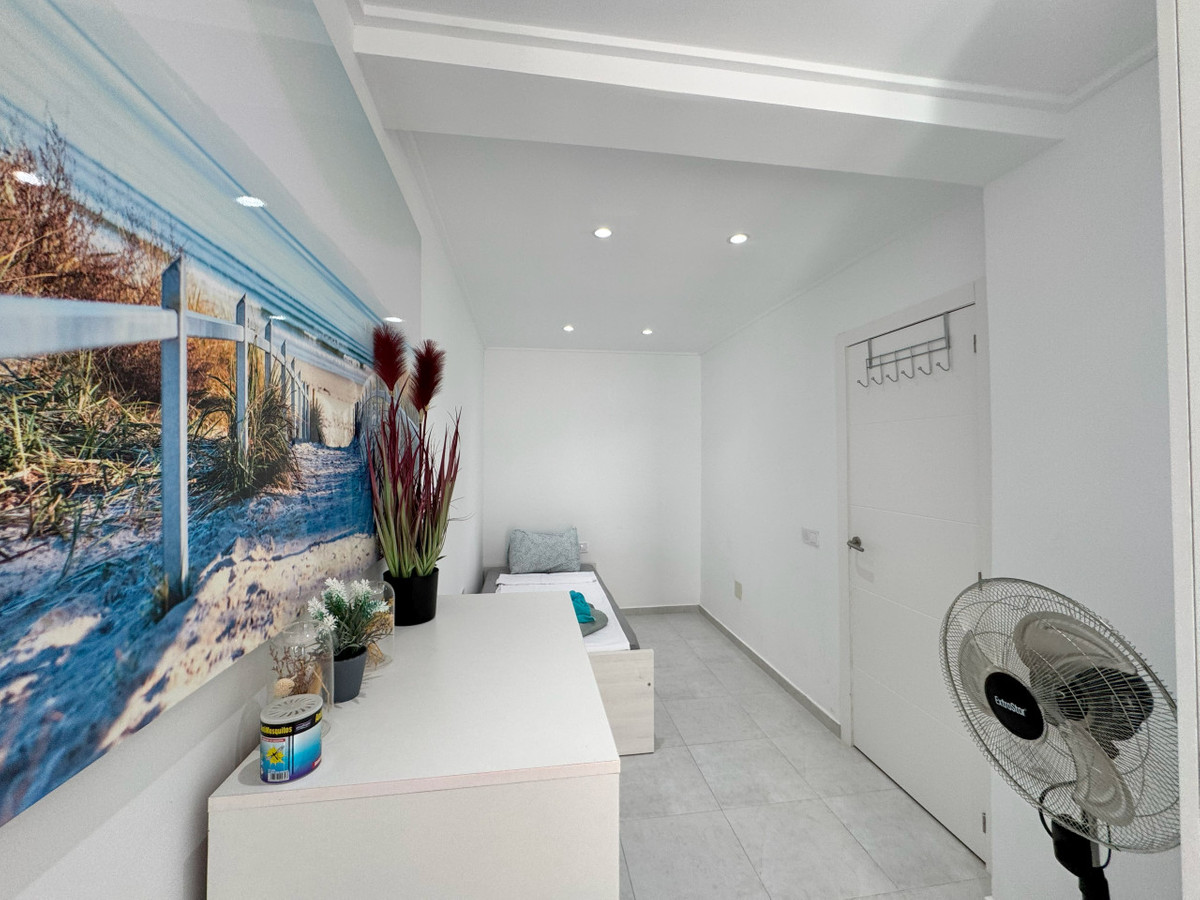This charming bungalow in Torrevieja offers 55 m² of living space and a spacious 60 m² terrace, located just 1 km from the popular Los Locos Beach. The property features two bright bedrooms, a modern bathroom, a comfortable living room, and a fully equipped kitchen. Sold fully furnished with new appliances and two brand-new air conditioning units, it is ready to move in. The large private terrace is ideal for outdoor dining, relaxing, or sunbathing. The location is excellent, with shops, cafes, and restaurants within walking distance, a park right in front of the property perfect for families and nature lovers, and nearby golf courses only 5 km away. Alicante Airport is just a 40-minute drive, making this bungalow a great option for permanent living or rental investment. Contact us to schedule a visit, request a virtual tour, or inquire about seasonal rental services. Don't miss the chance to own a fully renovated home in a sought-after area of Torrevieja!