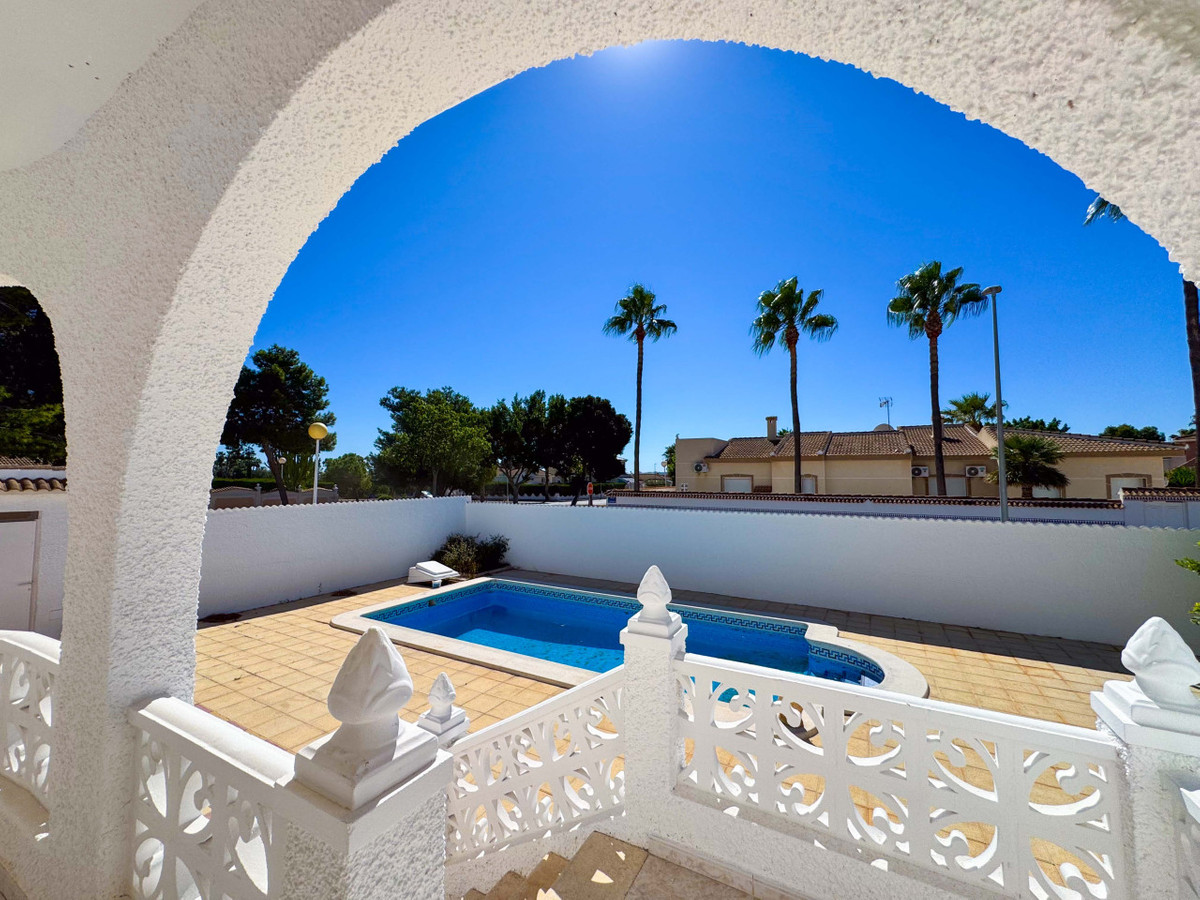 Chalet in Ciudad Quesada, Lo Marabú area featuring a private pool, garden, and closed garage. This single-story property offers 190 m2 of built space designed for comfort and accessibility. It includes a living-dining room with fireplace, an unfurnished open kitchen, four bedrooms with built-in wardrobes, and two fully renovated bathrooms. The private garden features a barbecue area and a pool ideal for warm days. The property also includes a secure garage space. Recently renovated, it is sold unfurnished, allowing for customization. Located in a quiet area close to local amenities, it is perfect as a residence or seasonal rental investment. Contact us to arrange an in-person visit, virtual tour, or request detailed plans.
