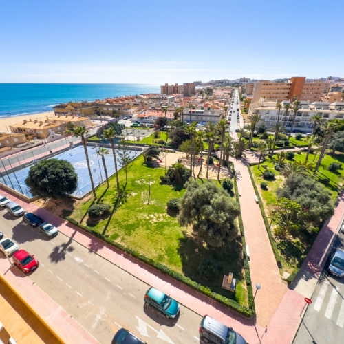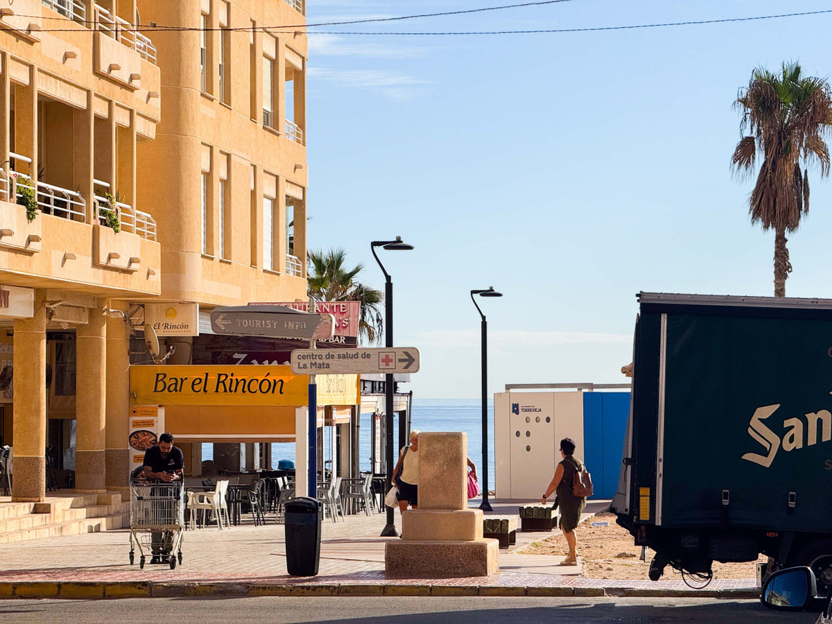 This penthouse in La Mata, Torrevieja, features a large corner terrace with panoramic sea views, offering a unique opportunity to live close to the beach. With 161 m2 built, this apartment has four spacious bedrooms, two large living rooms, and a dining area, alongside two full bathrooms, including one en suite. The layout includes an independent kitchen with laundry room and a glazed terrace used as a dining area, perfect for enjoying morning and afternoon sun with sea views from almost every room. The property allows for customization and renovation to add your personal touch. Located in the heart of La Mata, just 20 meters from restaurants, supermarkets, pharmacy, and other services, this penthouse combines comfort and a prime location. Ideal for residential investment with seasonal rental potential or as a permanent home. Don't miss the chance to visit this exceptional property. Contact us to schedule a physical visit or request a virtual tour and detailed plans.