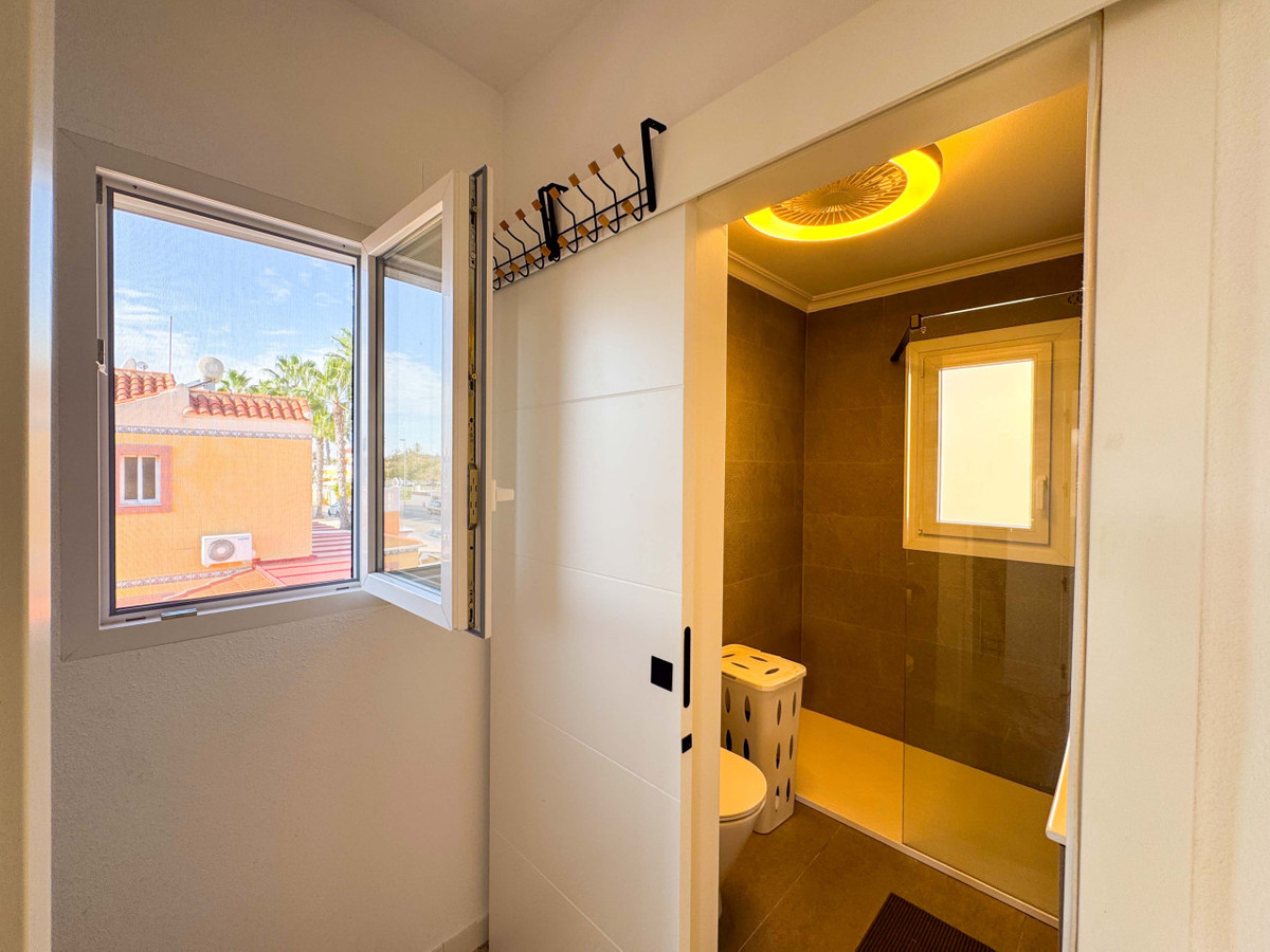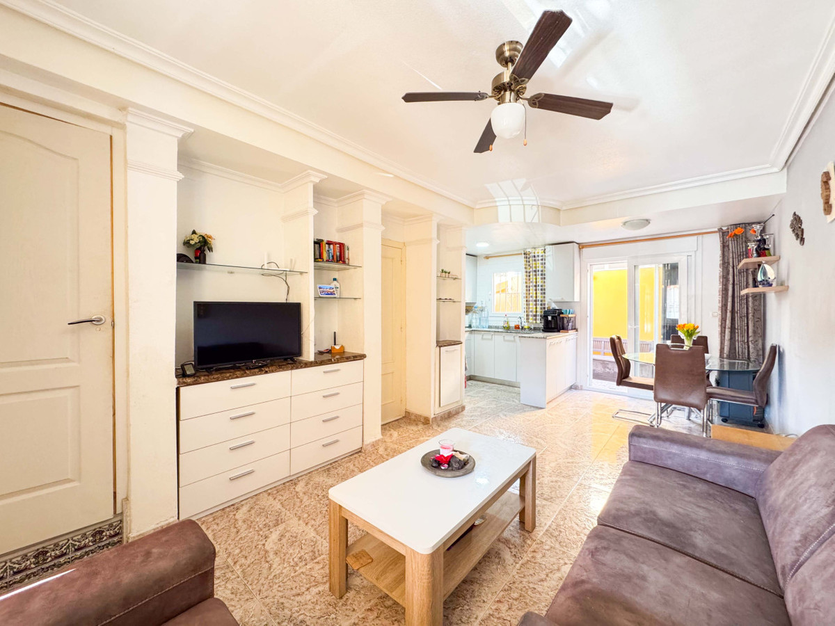 This corner townhouse in La Zenia offers a spacious private garden and a dedicated parking space, making it ideal for permanent living or holiday retreats. Located just 1,500 meters from the renowned beaches of La Zenia and Cabo Roig, this property enjoys a south-facing orientation that ensures natural sunlight throughout the day. The home features a bright and spacious entrance hall with an open-plan kitchen and a guest toilet on the ground floor. Upstairs, there are two large, bright bedrooms and a modern bathroom equipped with a walk-in shower. Double-glazed windows provide excellent insulation and comfort, while solar panels make the property energy-independent.The corner location enhances privacy, space, and natural light, complemented by a large private outdoor area perfect for relaxing, gardening, or outdoor dining. Residents benefit from a private parking space and proximity to essential amenities such as Lidl, Mercadona, pharmacies, and restaurants. Zenia Boulevard, the largest shopping center in the area, is within a 10 to 15-minute walk.Situated on the beautiful Costa Blanca coast with well-developed infrastructure, the townhouse represents an excellent investment opportunity for those seeking a comfortable home or a seasonal rental. Contact us today to schedule a viewing or request a virtual tour and floor plans. Take advantage of the option to invest with seasonal rental services. ---