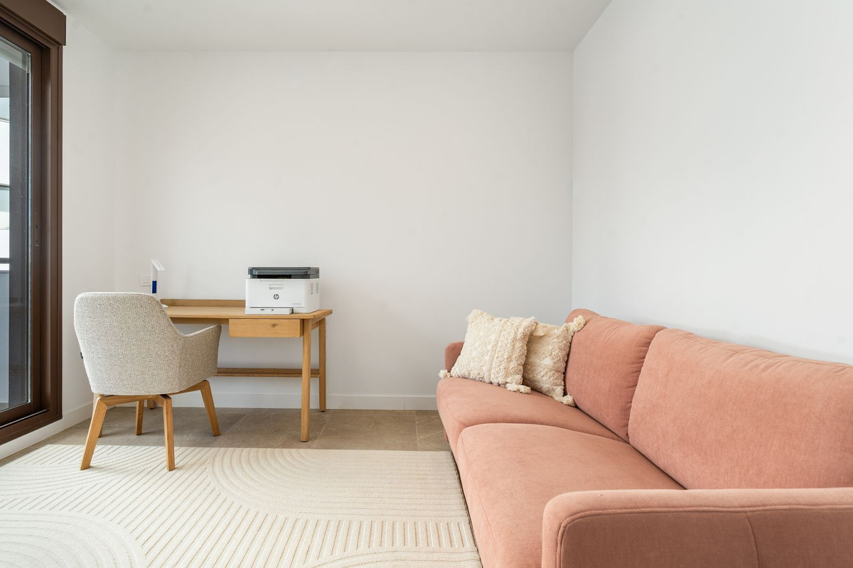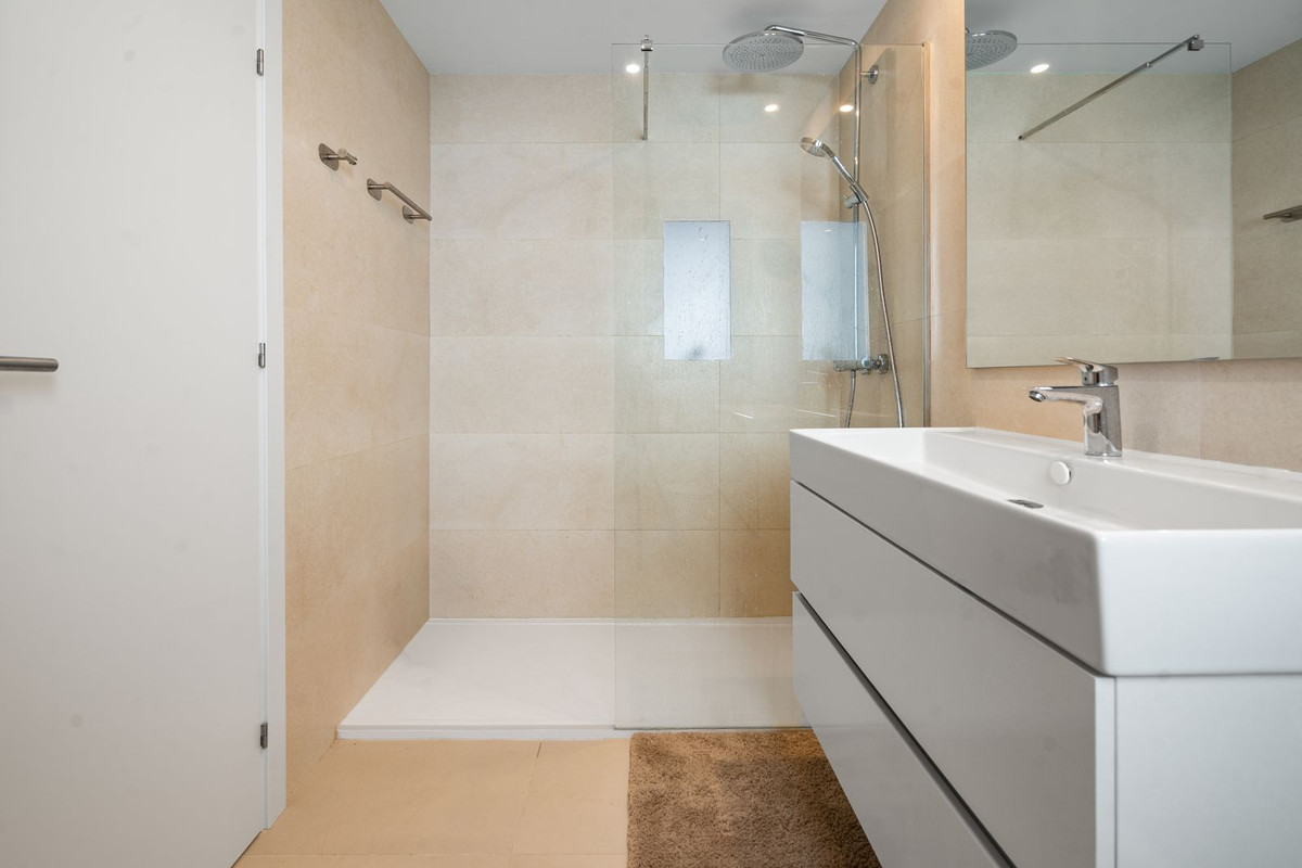 Being a corner unit, the apartment benefits from large windows on multiple sides, allowing natural light to flood the interiors throughout the day. Designed with comfort and style in mind, the apartment offers a bright open-plan living area. From the living room, large sliding doors open onto a spacious south-facing terrace, the perfect place to relax or entertain while enjoying the Mediterranean sunshine.