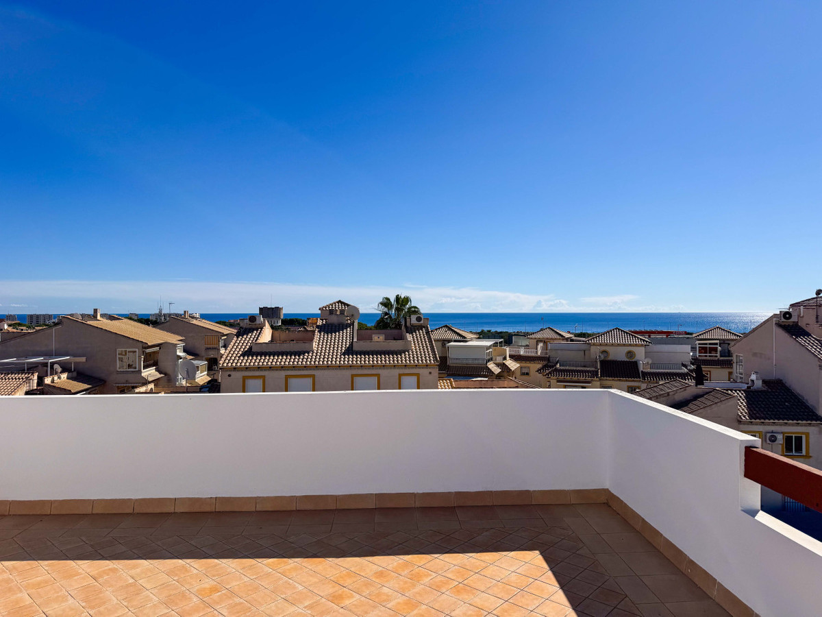 This penthouse with solarium in Punta Prima, Orihuela Costa offers sea views, a community pool, and private parking. It features a bright living-dining room with balcony access, an open kitchen without appliances, two bedrooms with built-in wardrobes, and two full bathrooms. With approximately 75 square meters, this property is perfect for those seeking a comfortable and functional space near the sea. Punta Prima is a highly valued area due to its proximity to the coast and local amenities including shops, restaurants, and transport links. The community pool and private parking add value and convenience. We invite you to schedule a visit or request a virtual tour or floor plan. This can also be a great investment opportunity with seasonal rental potential. Contact us to visit and explore this opportunity in Orihuela Costa.