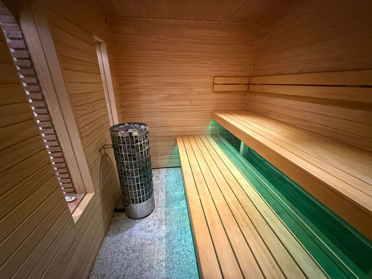 The lower (garden) level includes a traditional bodega/cave area, storage room, laundry room, and a Finnish sauna, as well as an open-plan TV or games room—perfect for relaxation and entertainment.