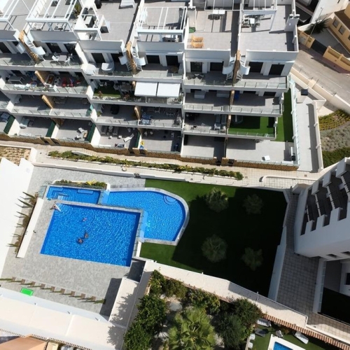 Muligheder som denne er sjældne — Bioko Delux-penthouselejlighederne er blandt de mest eftertragtede boliger på hele Costa Blanca Syd og kommer næsten aldrig på markedet. Vi er stolte af at kunne tilbyde dette spektakulære penthouse med tre soveværelser og to badeværelser eksklusivt.~Dette er det næstnærmeste penthouse til havet i hele bebyggelsen og tilbyder en uovertruffen nærhed til Middelhavet, hvor komplekset selv ligger i anden række til stranden.~Kronjuvelen er den rummelige private tagterrasse – komplet med jacuzzi, fuldt udstyret udendørskøkken og en betagende panoramaudsigt over havet. Det er det perfekte sted til at underholde, slappe af i solen eller nyde aftenens solopgange over vandet.~Indenfor er boligen med åben planløsning og luksuriøs finish, med rige teksturerede vægpaneler, der skaber en unik og sofistikeret atmosfære i alle opholdsrum.~Bioko Delux tilbyder førsteklasses faciliteter, herunder:~Stor fælles pool~Indendørs spa med opvarmet pool, sauna og omklædningsrum~Motionsrum~Fællesområde~En privat garageplads og et opbevaringsrum er også inkluderet i prisen.~Dette er mere end bare et hjem — det er en sjælden chance for at eje en af de mest eksklusive penthouselejligheder på Costa Blanca Syd.