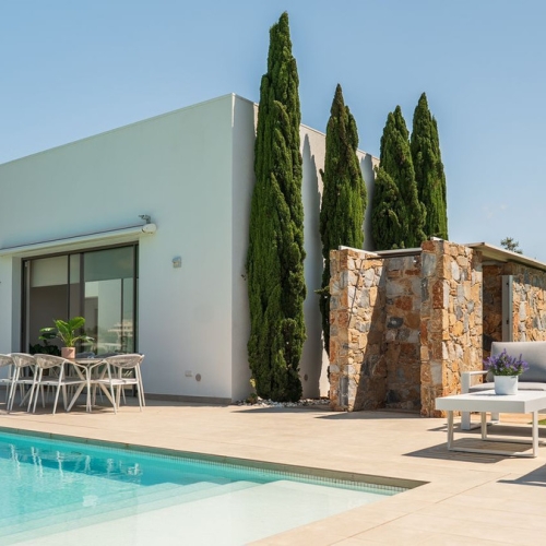 3-værelses Villa Madroño – Las Colinas Golf & Country Club~~Oplev luksus, privatliv og betagende udsigt over golfbanen i denne fantastiske sydvestvendte fritliggende villa på en 951 m2 stor grund i den prestigefyldte Las Colinas Golf & Country Club.~~Designet til problemfri indendørs-udendørs livsstil, tilbyder dette hjem moderne elegance og førsteklasses faciliteter.~~Hovedniveau: Med et åbent køkken med high-end apparater, rigelig opbevaringsplads og et rummeligt arbejdsområde. Den lyse og luftige opholdsstue strækker sig ubesværet til den smukke have og private opvarmede pool, hvilket skaber de perfekte rammer for afslapning og underholdning. Villaen tilbyder tre soveværelser, alle med direkte adgang til haven, inklusive en master suite med en-suite badeværelse. Gulvvarme i badeværelserne sikrer komfort året rundt.~~Tagterrasse: En 60 m2 privat oase med en pergola, loungeområde og panoramaudsigt over den prisvindende golfbane og den omkringliggende skov – ideel til solnedgangsaftener og udendørs sammenkomster.~~Nedre niveau: En massiv 96 m2 kælder/garage, perfekt til sikker parkering, et hjemme-fitnesscenter eller ekstra opbevaring.~~Denne villa er udstyret med et smart home-system, der giver mulighed for ubesværet kontrol af belysning, temperatur og sikkerhed. Designet til både luksus og funktionalitet, er det det ultimative tilflugtssted for dem, der søger en sofistikeret livsstil i et eksklusivt samfund.~~Las Colinas Golf & Country Club~~En verden for sig!~~Las Colinas Golf & Country Club er et af de mest prestigefyldte resorts på Costa Blanca! Det er et eksklusivt og unikt 330 hektar stort golfresort med mange sportsfaciliteter, herunder golf, padel, vandreture, fitness, yoga og meget mere. Det er en verden for sig, hvor du kan nyde en sund middelhavslivsstil.~~Med et exceptionelt klima og førsteklasses service er resortet blevet anerkendt som "Spaniens og Europas førende villaresort" af World Travel Awards i de seneste år. Beliggende blandt bakkerne i Dehesa de Campoamor – på Middelhavskysten syd for Alicante – er Las Colinas Golf & Country Club et unikt naturområde, der er blevet omhyggeligt bevaret, og hvor eksklusive boliger er blevet integreret i omgivelserne, hvor du kan slappe af og nyde naturen. Dette resort, med nogle fremragende restauranter og Wow Beach by Las Colinas, har et internationalt ry og er velkendt og eftertragtet af berømtheder. Find dit drømmehus i dag ved at tage et kig på de smukkeste og mest eksklusive boliger, vi har at tilbyde!