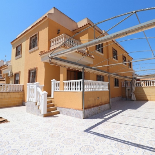 This South West Facing, Three Bedroom, Quad Villa in Lo Marabu, is located on the outskirts of Quesada, just a five minute drive away. La Marquesa golf course can be reached within ten minutes, while main chain supermarkets, a JYSK furniture store, and a wide variety of eating places and café bars are all within a ten minute walk. The beautiful coast beaches of the Costa Blanca South are approximately a 15 minute drive. This spacious property offers a 104m² build and begins with a roomy glazed-in entrance terrace, ideal for year-round use. Inside, the living room provides a comfortable and bright space, complemented by a separate fitted kitchen and a convenient ground-floor cloakroom. On the first floor, there are three double bedrooms, with the master bedroom benefiting from built-in wardrobes and access to a glazed-in terrace. A family shower room serves this level. From inside the property, there is access up to the private solarium, where you can enjoy wonderful mountain and salt lake views. Externally, the tiled garden is designed for easy maintenance and includes off-road parking and a private swimming pool. In addition, residents have the benefit of choosing between two communal swimming pools. This attractive quad villa offers generous space, excellent outdoor areas, and a superb location, making it ideal as a family home, holiday retreat, or investment opportunity on the Costa Blanca South.\n