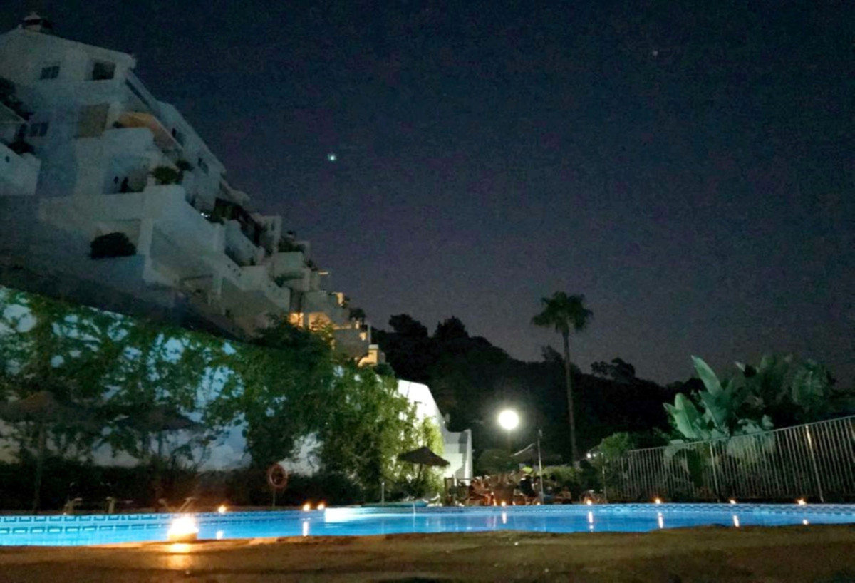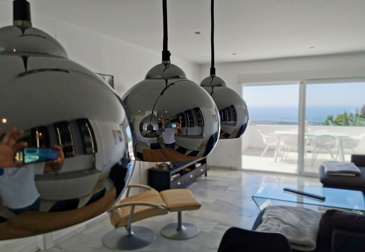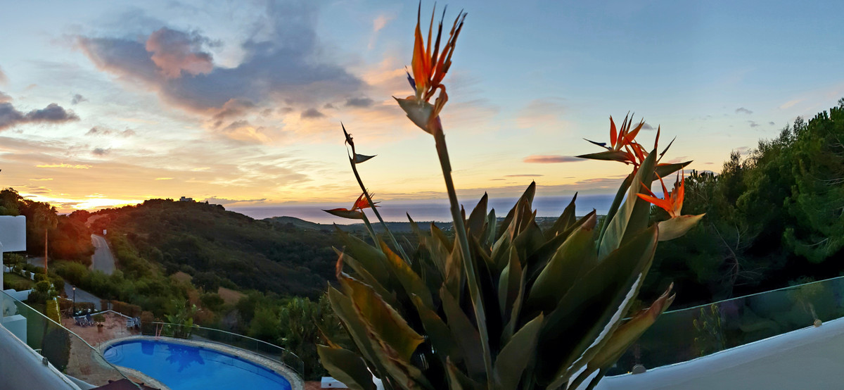 WHAT A VIEW! This superb south facing 3 bed corner duplex apartment lies on the hills of Elviria and boasts utterly breathtaking views to the sea towards the coasts of Africa. Probably the best unit in this small complex of 28 neighbors only, the apartment has been tastefully refurbished and upgraded, is in excellent condition and perrfectly equipped. The property features on a main floor a good size living-dining room open onto a superb terrace with commanding views, luxury open plan kitchen with Silestone work-top and Bosh appliances, one double bedroom with large wardrobes opening onto the main terrace and one bathroom with large walk-in shower. The lower level accommodates the 2nd and 3rd bedrooms both with large wardrobes sharing a large bathroom and a beautiful covered terrace with stunning views as well. This property is by far the most private within the complex and benefits from a large rear patio with al-fresco dining and BBQ area and a private storage room. The community is gated, very peaceful and private, perfectly integrated in the naturals surroundings with a superb swimming-pool and parking spaces. Ideal for long term stay or family holiday. It really worths a viewing.