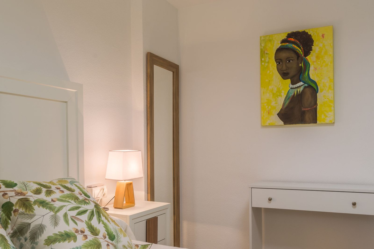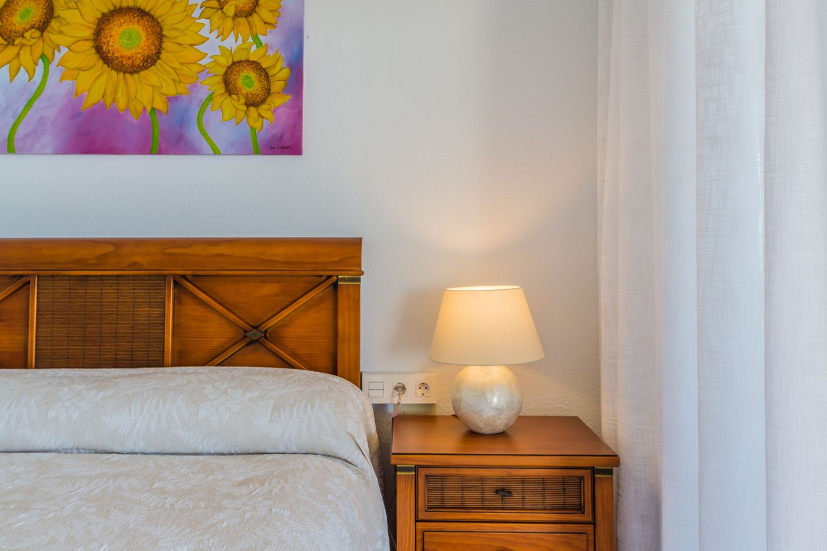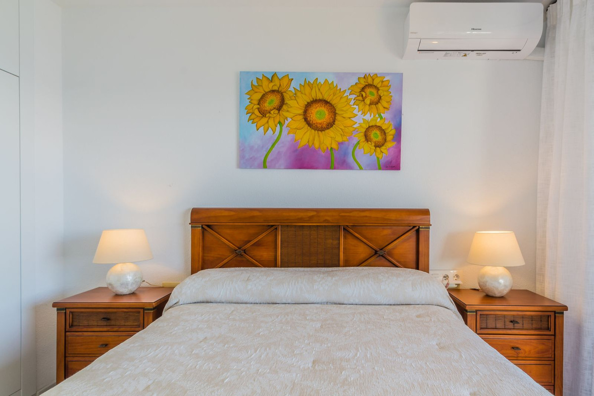 Lejligheden er udstyret med aircondition og loftsventilatorer i både stuen og soveværelserne. Den sælges fuldt møbleret med nye møbler af høj kvalitet: relaxlænestole, en italiensk sovesofa, senge med opklappelige opbevaringsbaser for ekstra opbevaringsplads samt specialfremstillede skabe i soveværelserne.