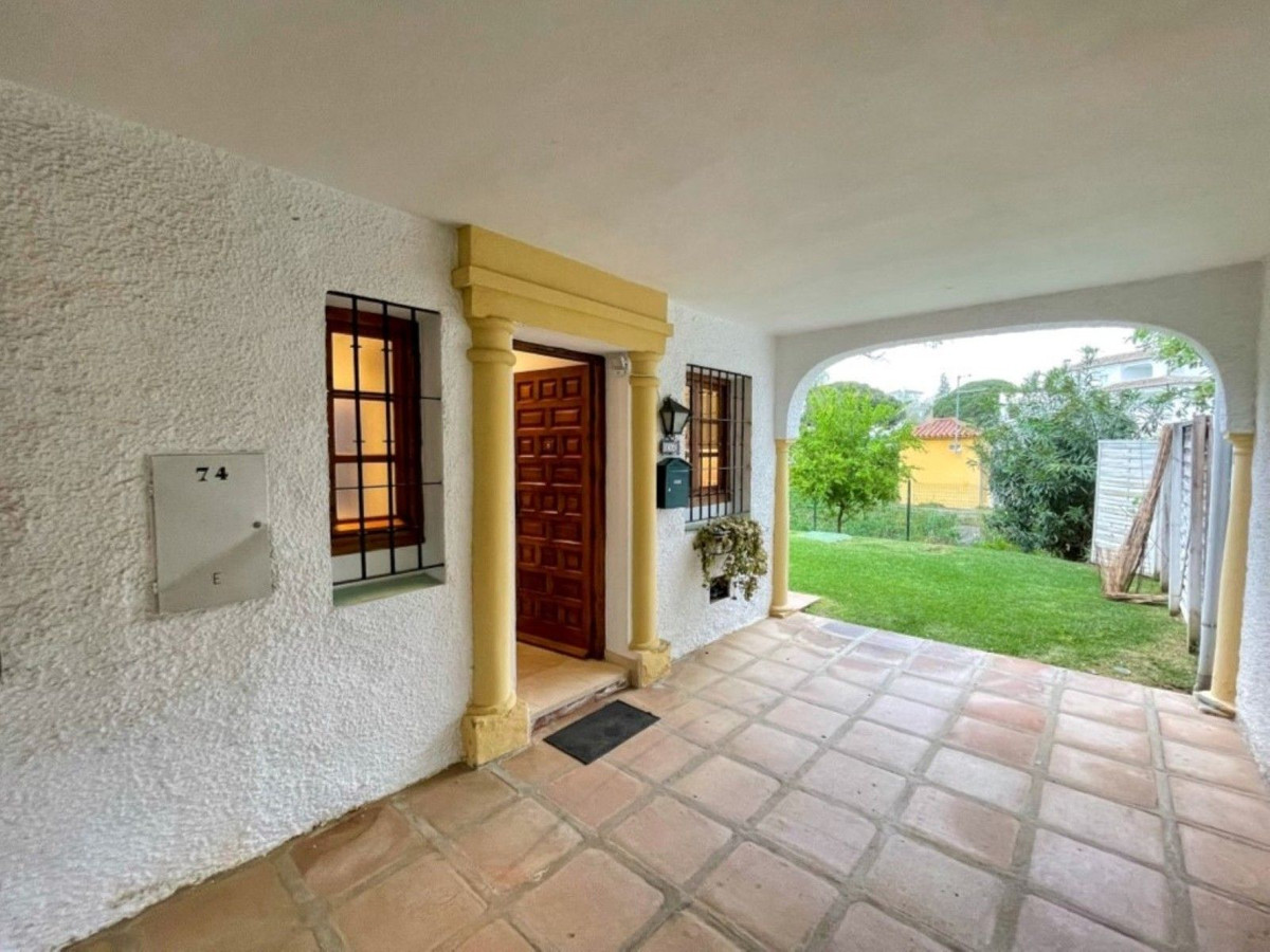 This delightful two-bedroom townhouse is ideally located within walking distance of all the amenities of Elviria, including shops, restaurants and the beach. Built in 1984, the property is situated within the gated community of Pueblo Los Arcos, set amongst picturesque and well-maintained communal gardens featuring a large swimming pool, tennis courts and a children's play and football area. Marbella is just a five-minute drive away and Málaga Airport approximately thirty minutes. The townhouse is beautifully presented and accessed through the immaculate communal gardens. The ground floor comprises a modern fully fitted kitchen, guest cloakroom/WC and a spacious lounge and dining area with feature fireplace and patio doors, complete with electric security blinds, leading onto a sunny private terrace. On the upper floor there are two double bedrooms, both with fitted wardrobes and private balconies overlooking the communal gardens, together with a newly refurbished family bathroom. This is a charming property set within a traditional Spanish pueblo environment, just a short stroll from the beach and all local amenities. Features include: air conditioning, marble flooring, fireplace, recently fitted double glazing and a private terrace.