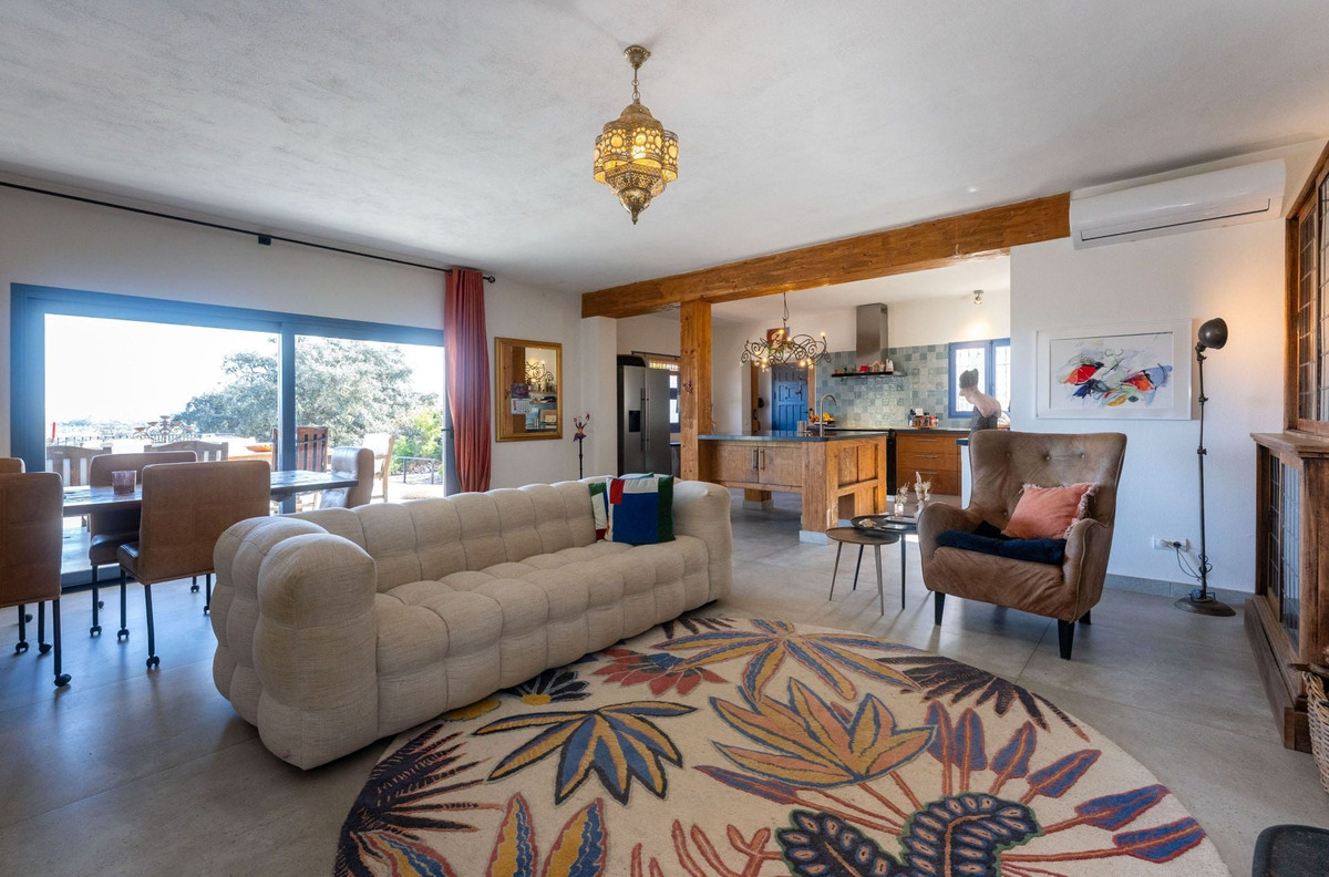 New to the market, this immaculate country property is ideally located in a prime position between Alhaurín el Grande and Coín, offering excellent road access to Marbella, Fuengirola and Málaga. The property enjoys stunning open mountain views while maintaining complete privacy, surrounded by mature vegetation and beautifully established gardens. The main house, all on one level, has been renovated to a very high standard and combines charm with modern comfort including underfloor heating and cooling system thoughout. It offers a spacious open-plan living and dining area with a feature log burner, air conditioning, and large French patio doors opening directly onto a private terrace overlooking the swimming pool, an ideal space to enjoy the panoramic views throughout the year.
