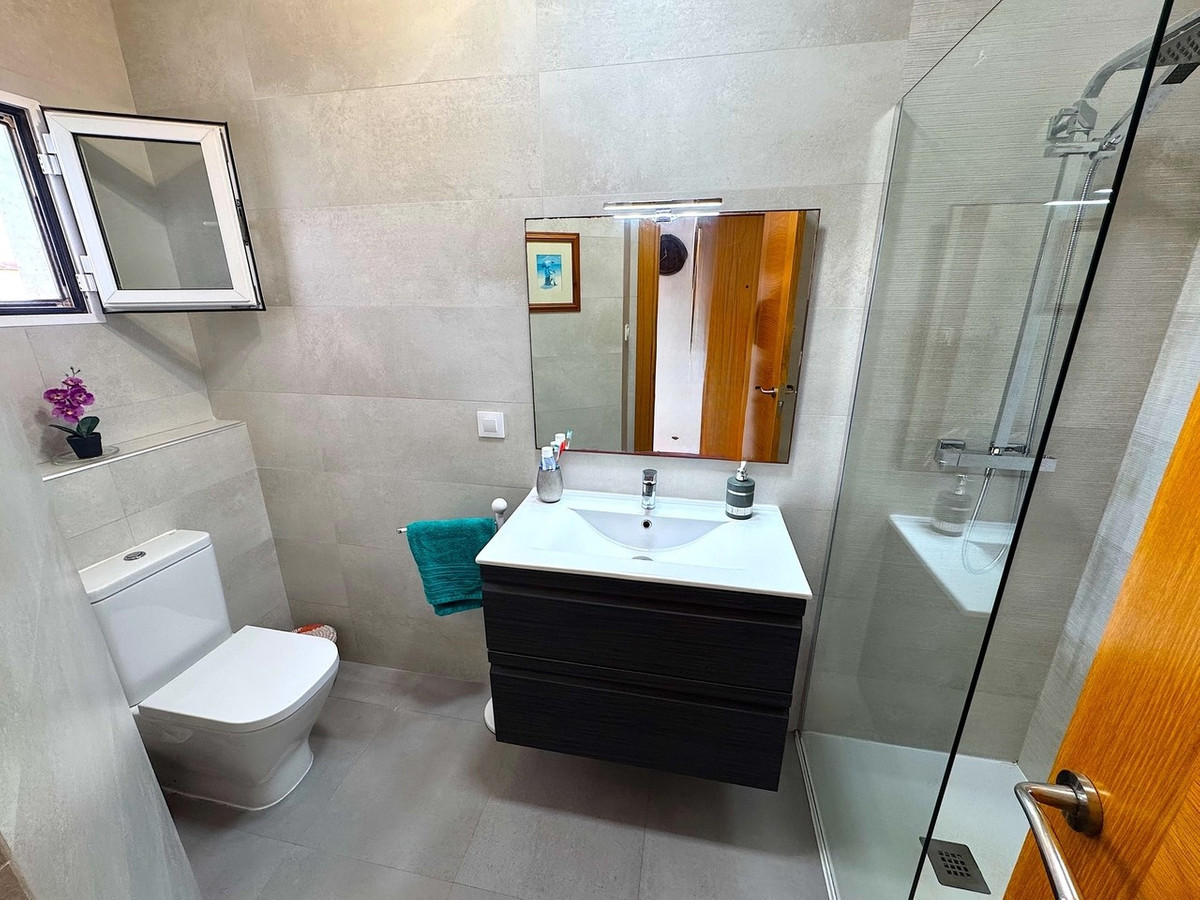 The spacious lounge and dining area is filled with natural light, thanks to large patio doors that perfectly frame the stunning views. The apartment benefits from new wooden flooring throughout and an air conditioning unit. From the living area, there is direct access to the terrace, which offers ample space for both seating and dining while enjoying the sunshine and sea views.