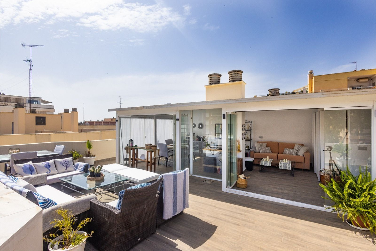 With 160 m² built area, the property particularly stands out for its impressive 79 m² private upper-floor terrace, currently enclosed with glass, offering multiple possibilities: a chill-out area, outdoor dining space, solarium, or leisure area — a true added value to the home.