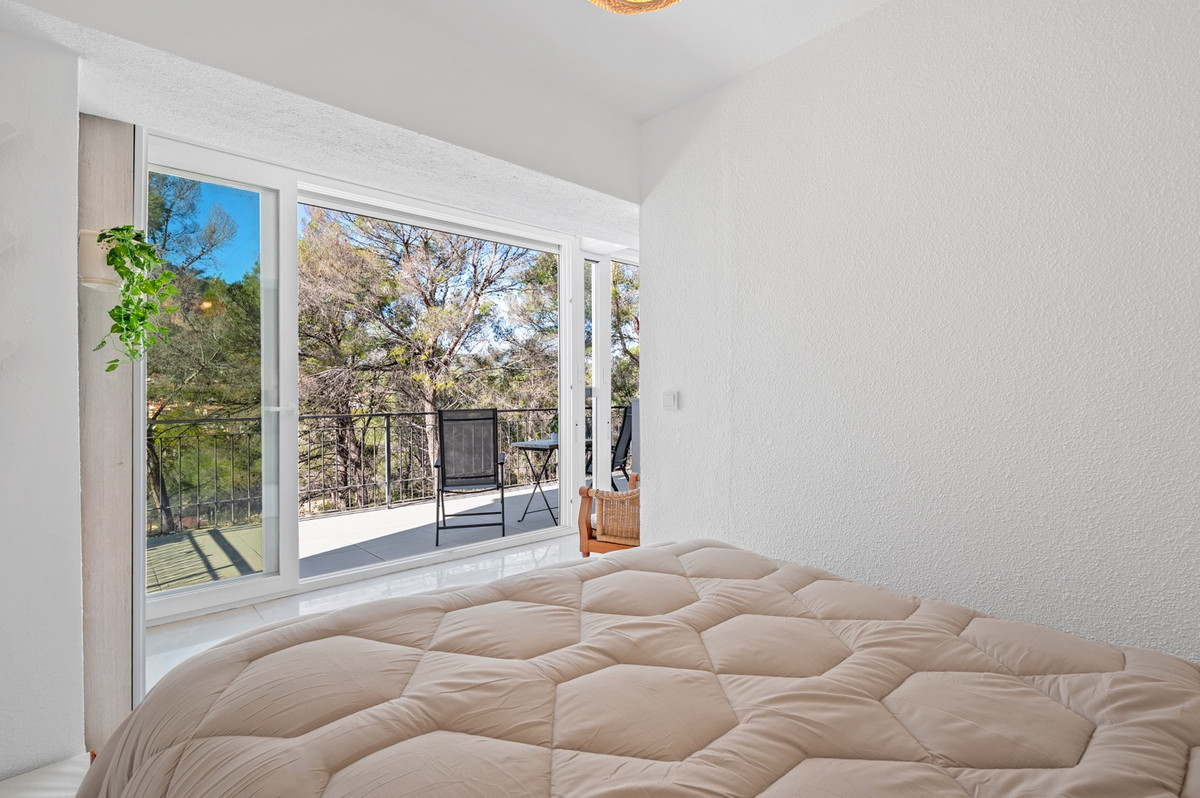 With over 60 built square meters, the apartment is distributed into an open-plan kitchen with breakfast bar and living room with stunning views of Mount Ponoig, two cozy bedrooms (a main bedroom connected to the living room and a secondary bedroom with a guest bed), a recently renovated bathroom finished to a high standard, a spacious terrace perfect for enjoying Ponoig's beautiful sunsets or cooking a paella with family and friends, and an adjoining storage room ideal for suitcases or other belongings.