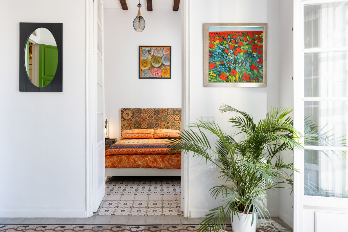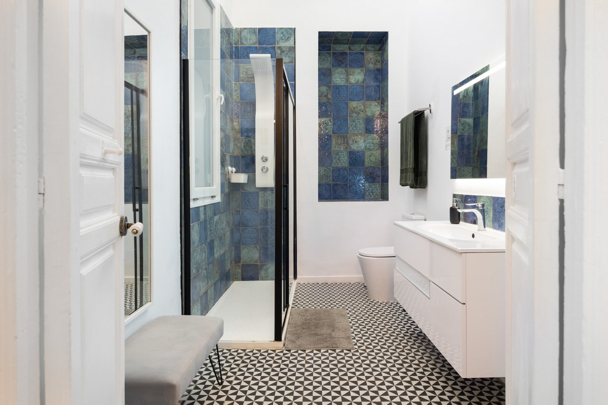 Impressive 4.2-meter-high ceilings with exposed beams, 3-meter doors, and original 19th-century tiles anchor a high-end renovation that honours the building's heritage while enhancing everyday comfort. The spa-style bathrooms offer generous dimensions and rain-effect showers; central air conditioning serves the entire residence. The versatile layout allows for an independent studio or three-bedroom apartment. At the moment, it's functioning as an Airbnb, making this ideal for guests or additional income as a short-term rental.