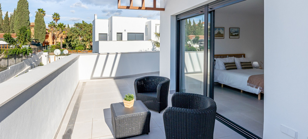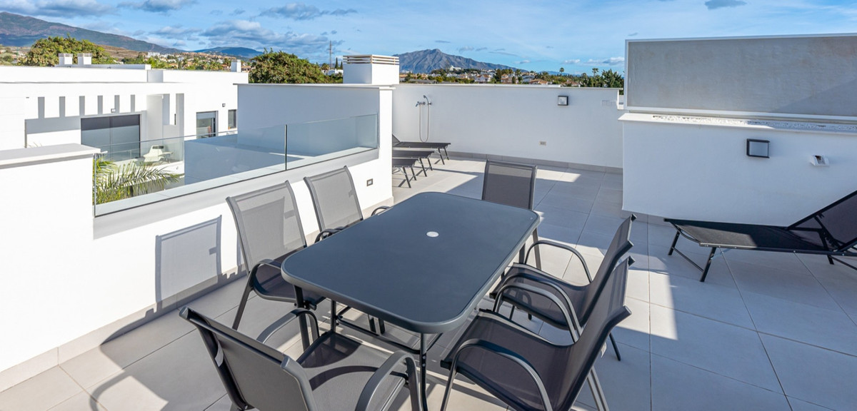 Magnificent newly built corner townhouse located in the exclusive Bel Air area, on Estepona's New Golden Mile, an ideal location to enjoy tranquility, comfort, and proximity to the sea.
