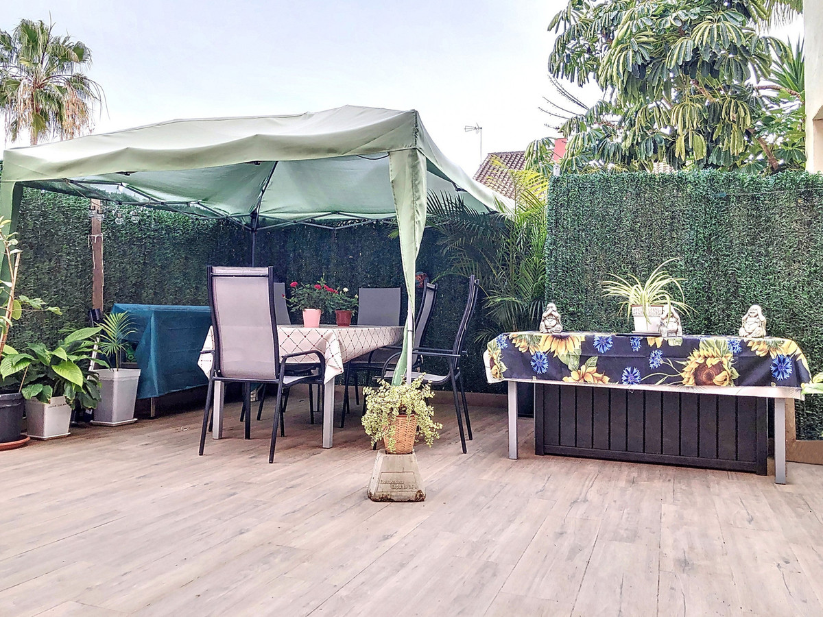 Additional features include individual air conditioning in the living room, elegant marble flooring, and double-glazed windows. The property is situated within a well-maintained, family-friendly urbanization with lush gardens and a communal swimming pool. Well-preserved and move-in ready, this townhouse is an excellent investment in one of Estepona's most desirable areas.